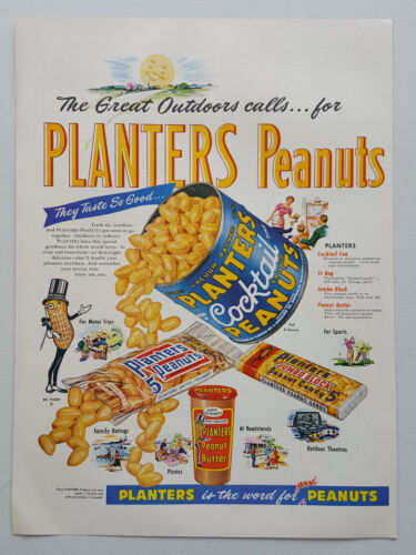 1954 Planters Cocktail Peanuts Candy Peanut Butter Picnic Vtg Magazine Print Ad