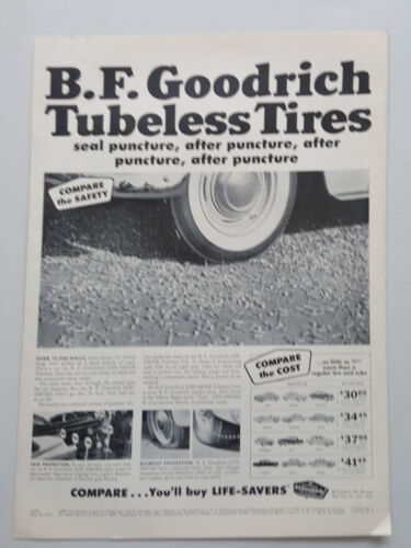 1954 B.F. Goodrich Tubeless Tires Life-Savers Nails Vintage Magazine Print Ad