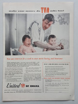 1954 United of Omaha Life Insurance Finance Dad Babies Tub Vtg Magazine Print Ad