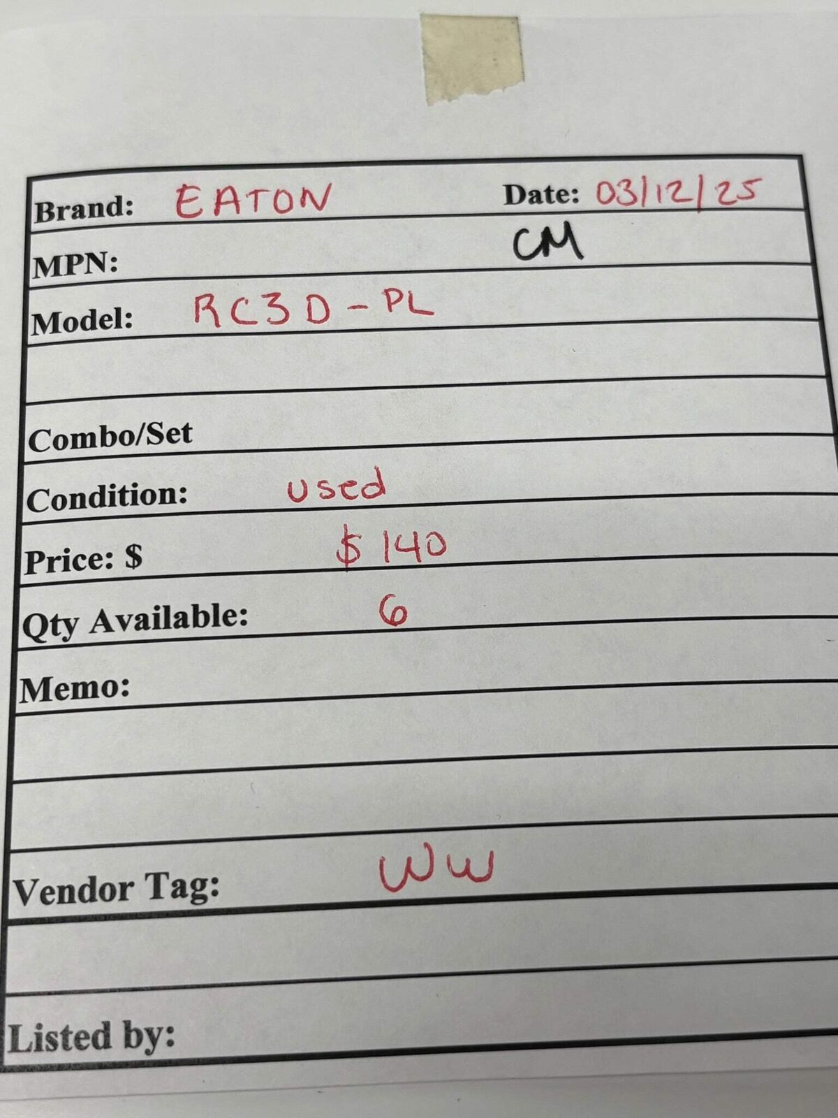 Eaton RC3D-Pl Room Controller 3 Relays, 3 0-10V Dimming 50/60Hz Room Controller, 3 relays, 3 0-10V Dimming, Plenum, 120-277 VAC, 50/60Hz, Maximum Combined Load 20A About Us Welcome to Help! Resale, your go-to consignment shop where value meets quality. At Help! Resale, we're dedicated to providing you with an exceptional shopping experience, whether you're looking to find the best deals or consign your gently used items. Help Resale 7200 Fair Oaks Blvd Ste 120 Carmichael CA 95608 Business Hours: Monday-Friday: 9:00 am to 5:30 pm (PST) All product and company names are trademarks TM or registered trademarks of their respective holders. Use of them does not imply any affiliation with or endorsement by them.