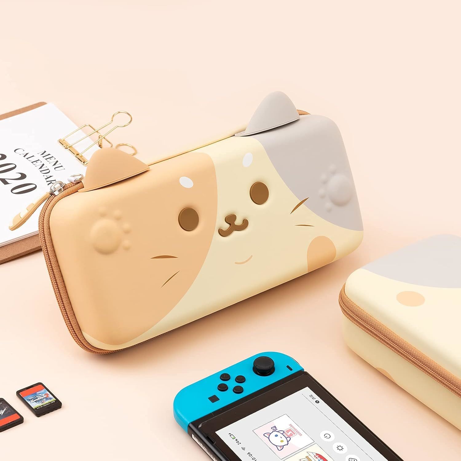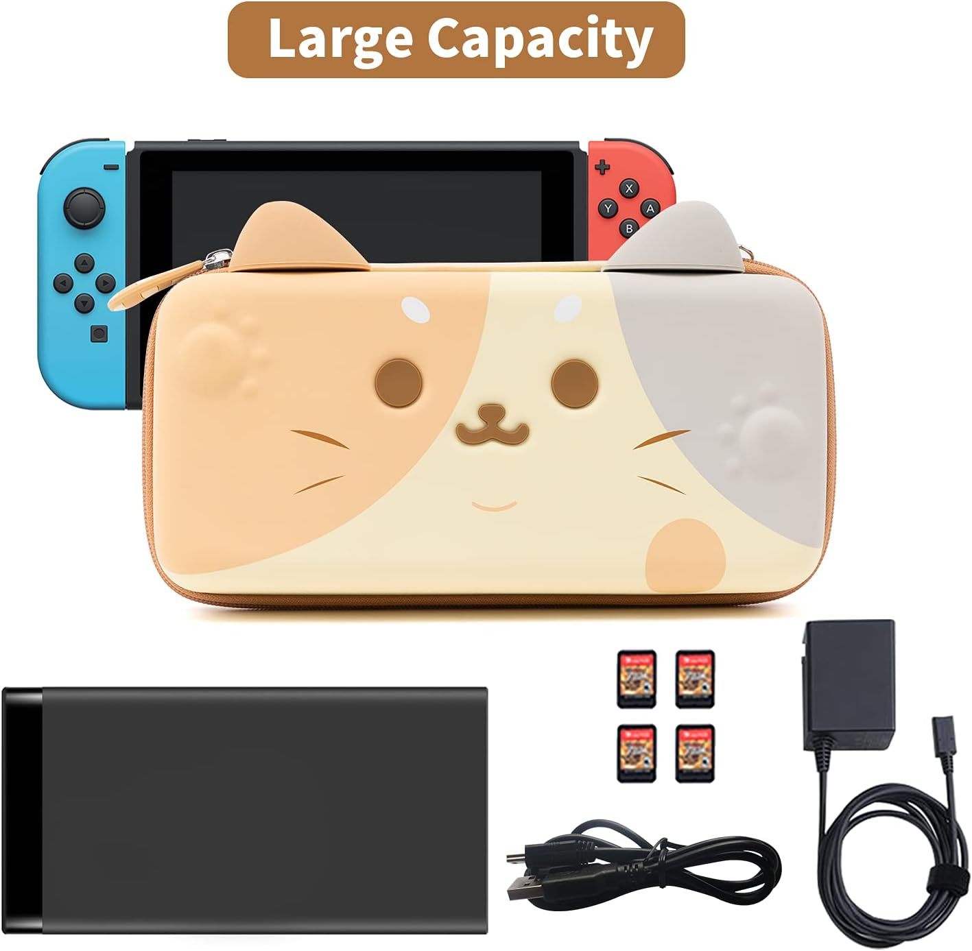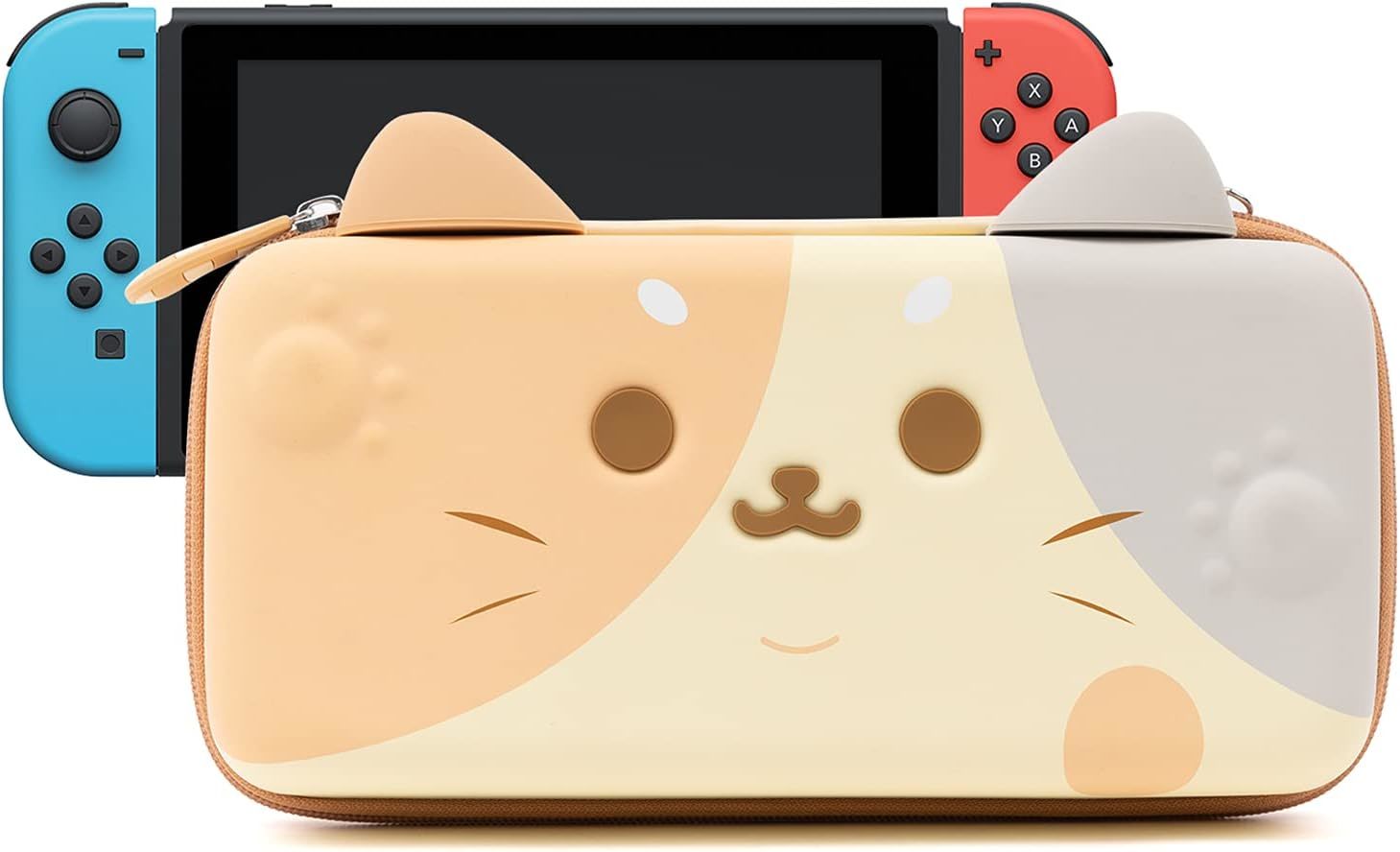 ?GeekShare Original Design?Cute cat ears switch/Switch OLED carrying case, raised cat paw design,prevent joysticks from damage and pressure.Two silicone little ears,can be used as a stand,which is well fixed and not easy to fall off. ?Full Protection?Customized cute cat tail zipper head,nice and practical.Comes with a removable wrist strap, soft and comfortable, allows for carrying or travelling. You can also put it in your bag to take anywhere. ?Large Capacity?Built-in 10 game card slots allow for carrying your favorite game cards. Thickness of about 2.4 inches, can be placed Switch/Switch OLED and also can carry other game accessories. ?High Quality?Made of high-quality and easy-to-clean PU material, protects your Switch/Switch OLED from drops, bumps, water splashes and scratches. The soft inner velvet material keeps your accessories free from scratches. ?Quality/Warranty?If you find any problems (damage, scratches, dirt, etc.), please feel free to contact us. Our shop always strives for customer satisfaction and always does our best to meet customer needs with better quality.