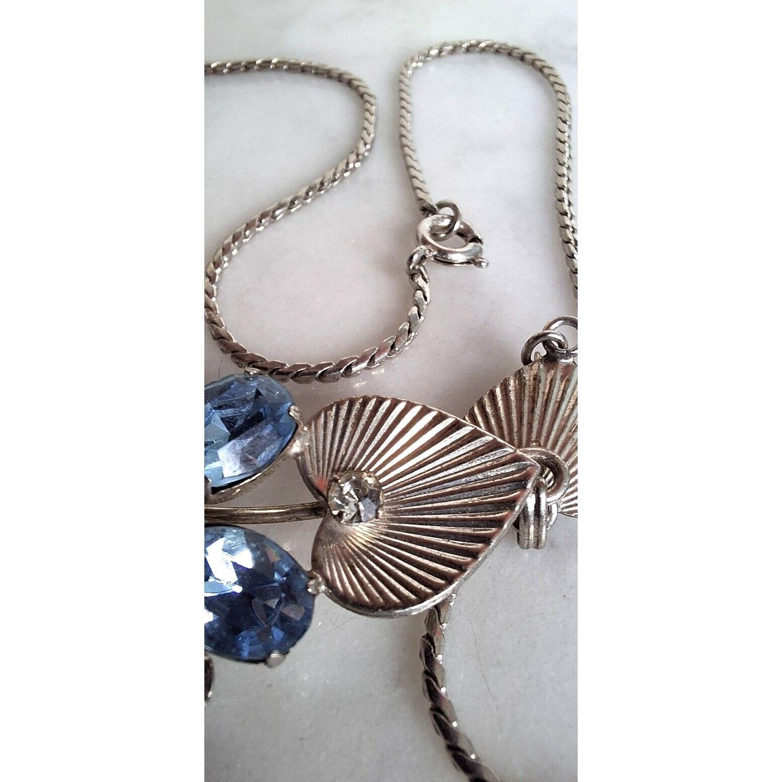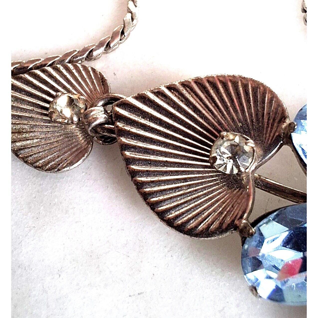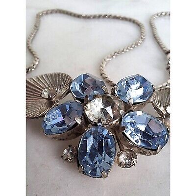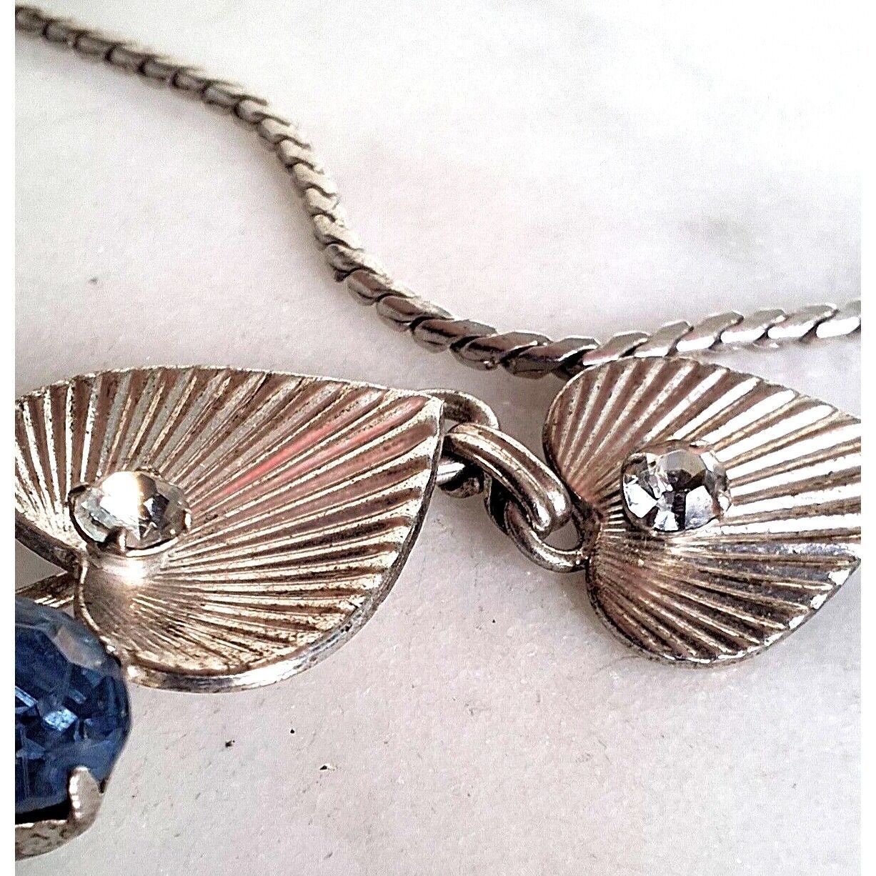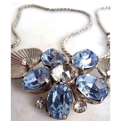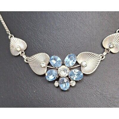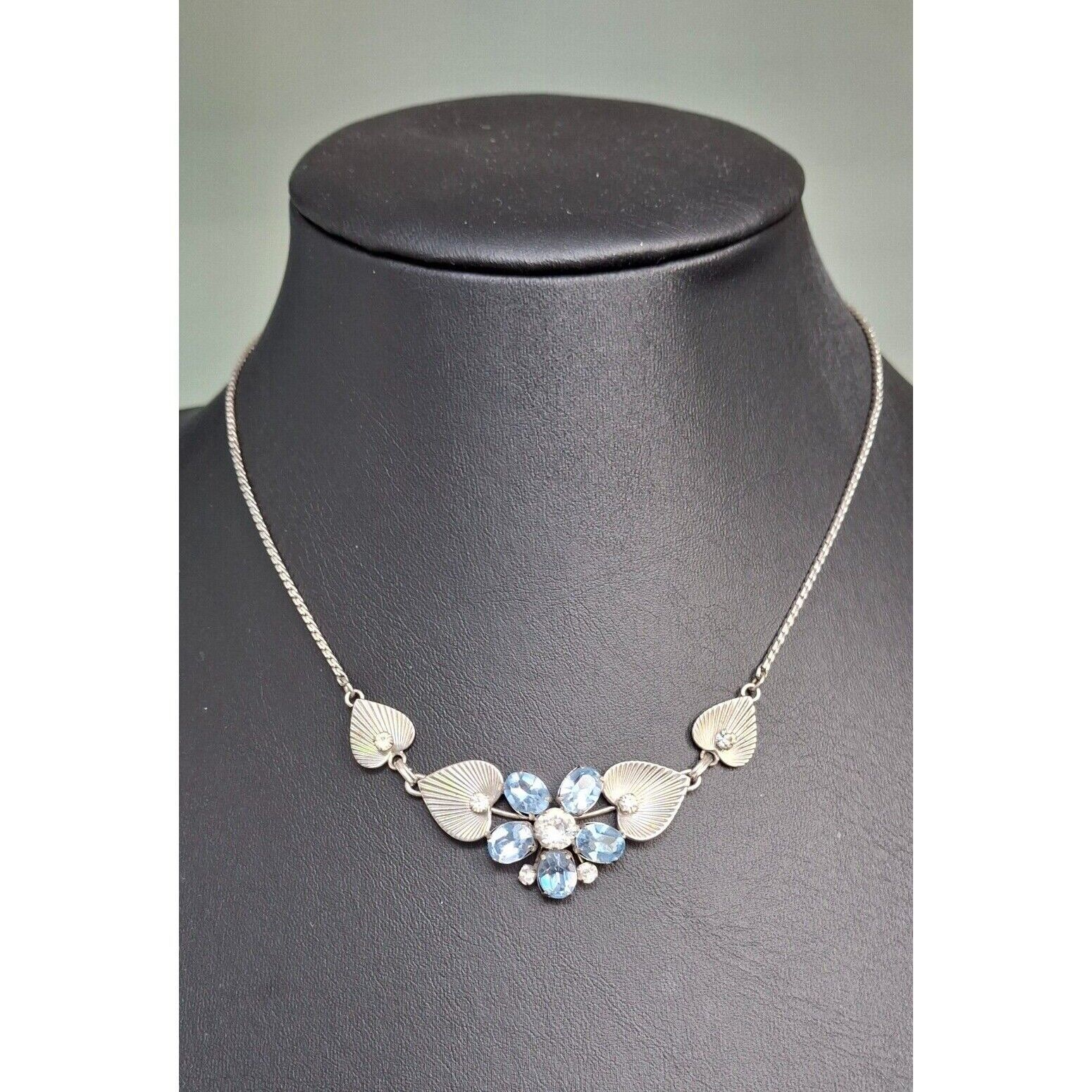 VINTAGE VAN DELL 925 STERLING SILVER BLUE AND CLEAR GEMS FLORAL NECKLACE SKY