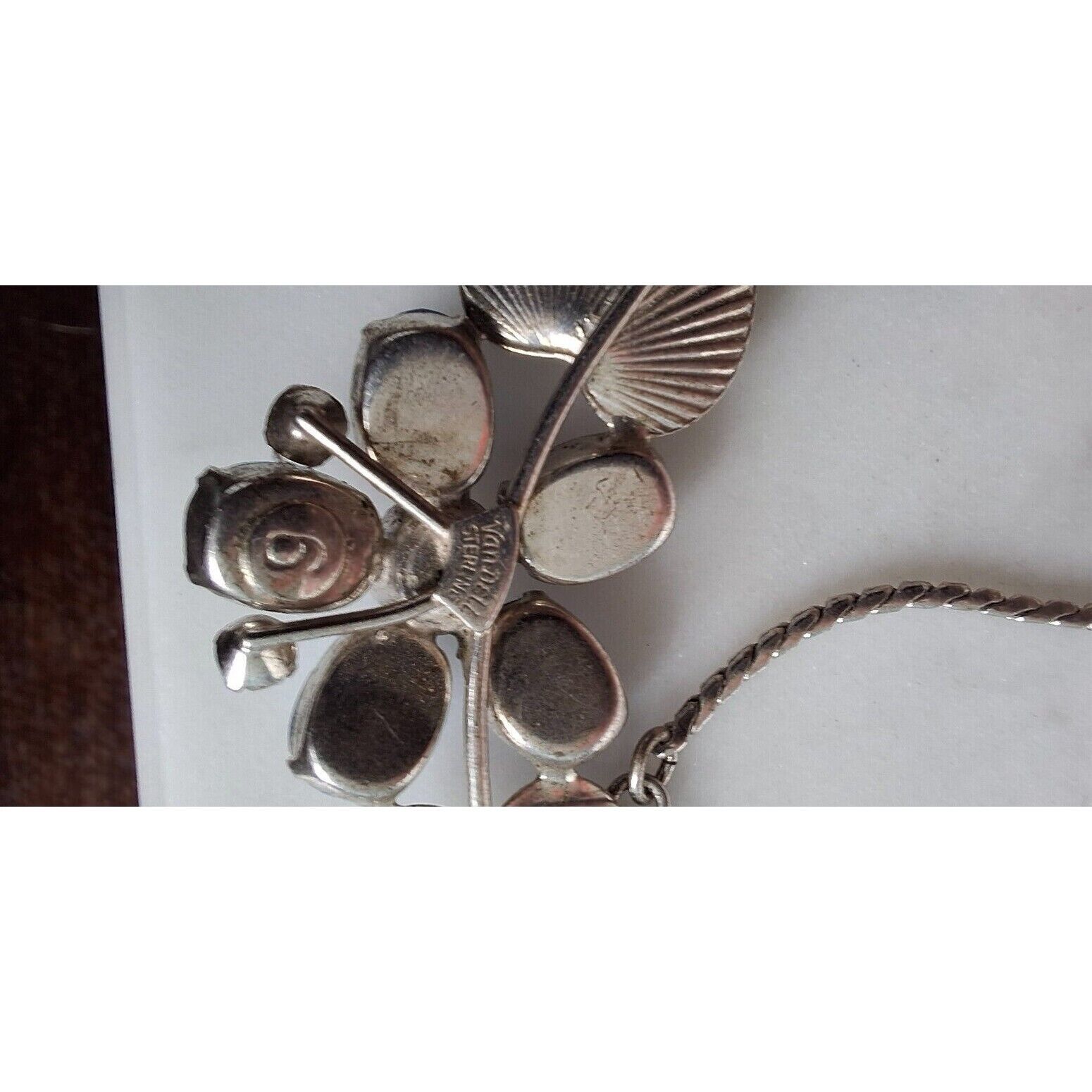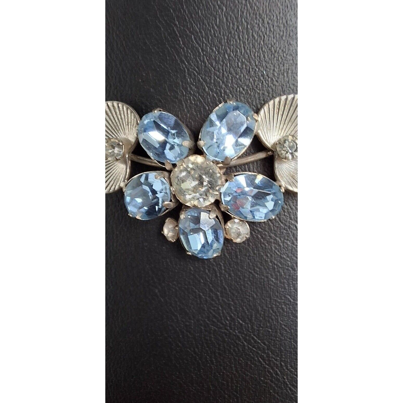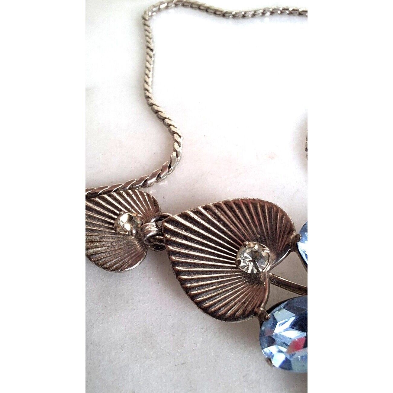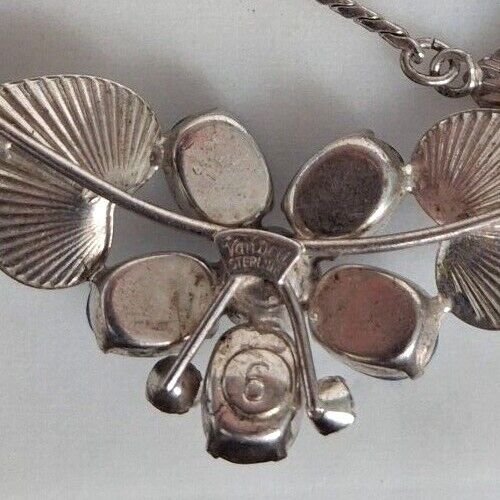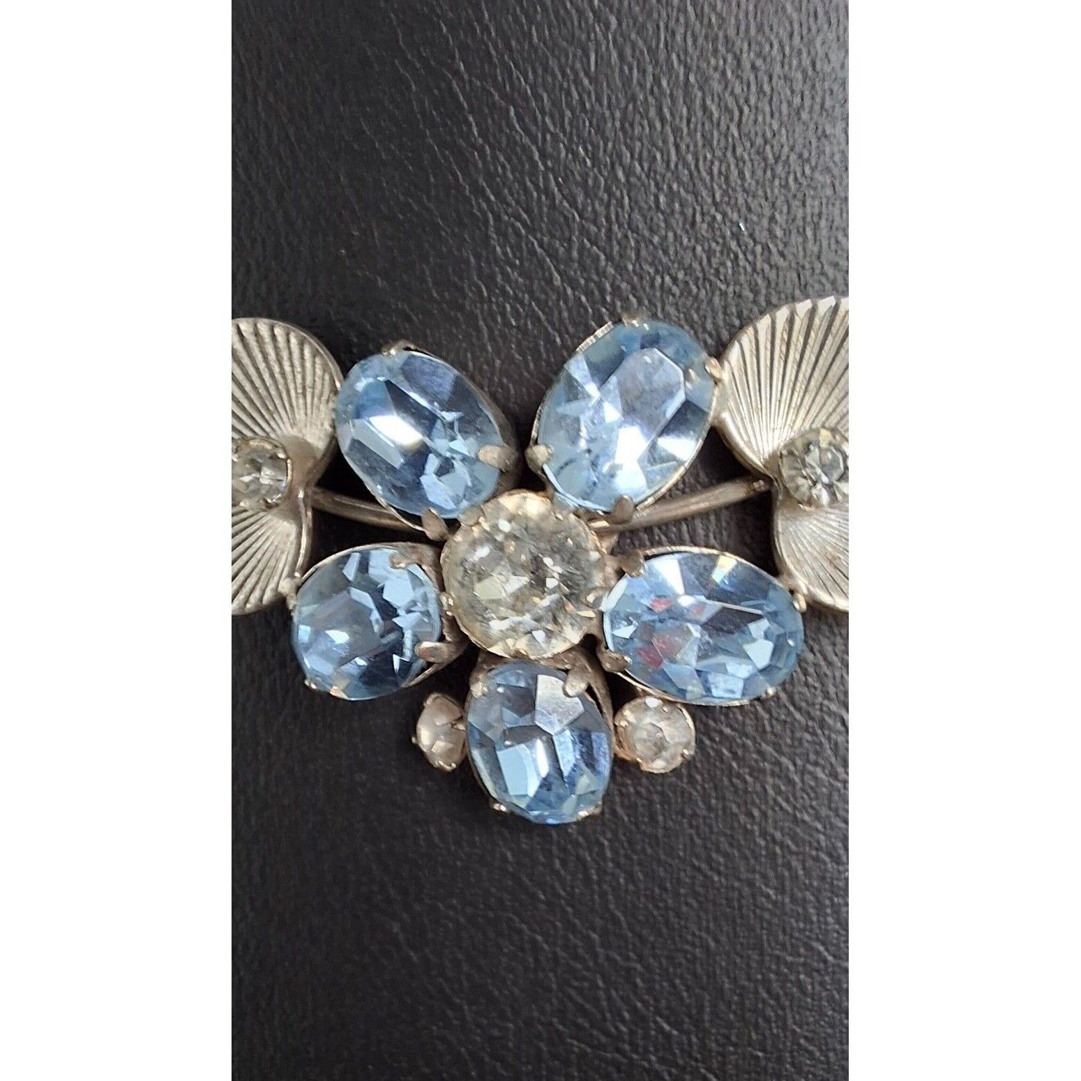 VINTAGE VAN DELL 925 STERLING SILVER BLUE AND CLEAR GEMS FLORAL NECKLACE SKY