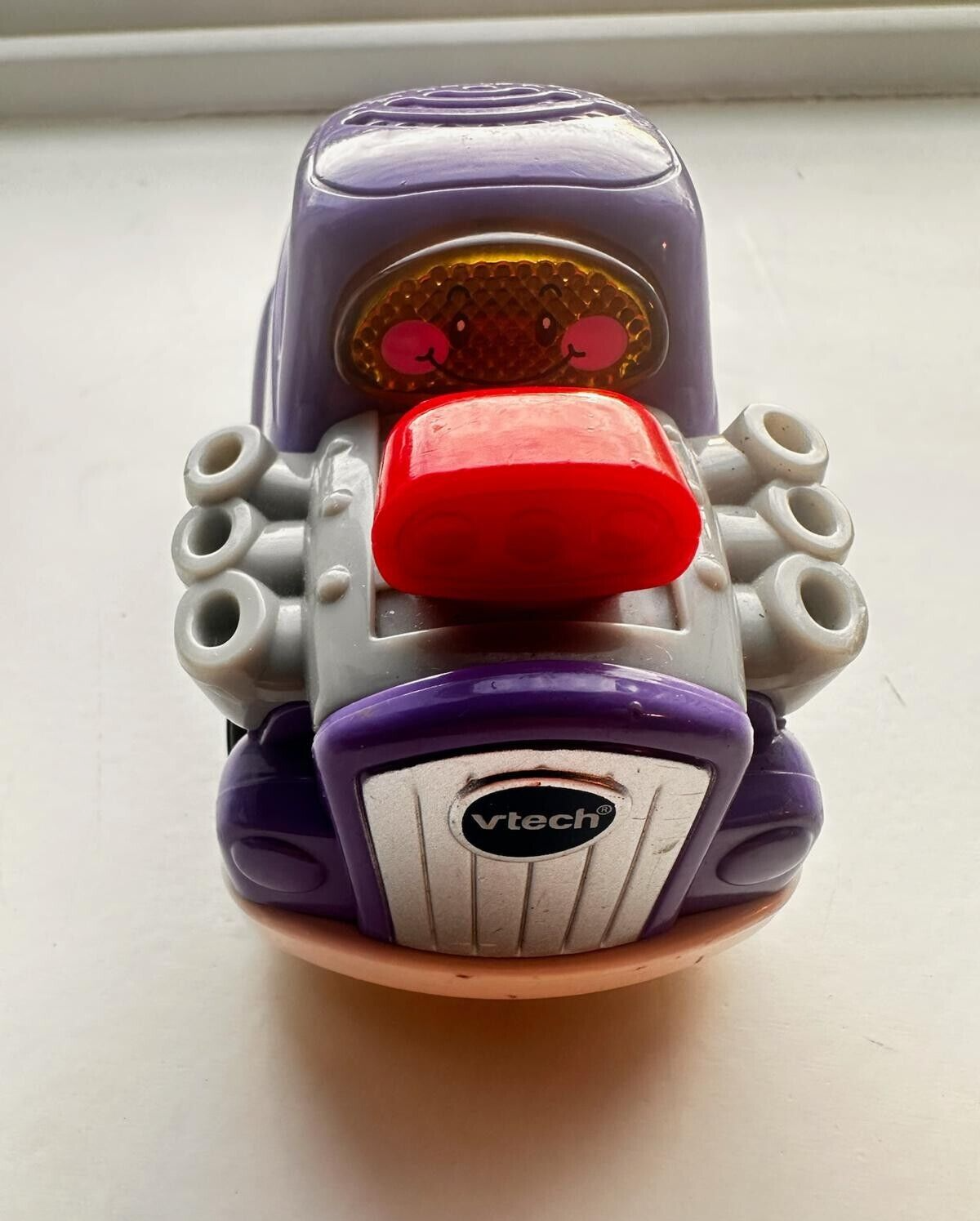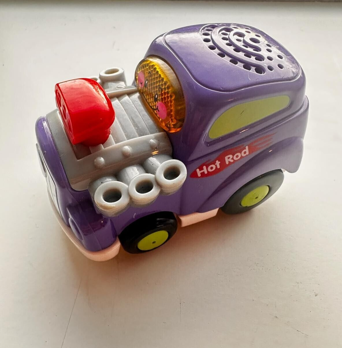 This listing is for a VTech Go! Go! Smart Wheels Hot Rod Car in a fun purple color with interactive features. This preowned toy is in great working condition with minor signs of use.