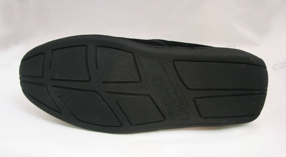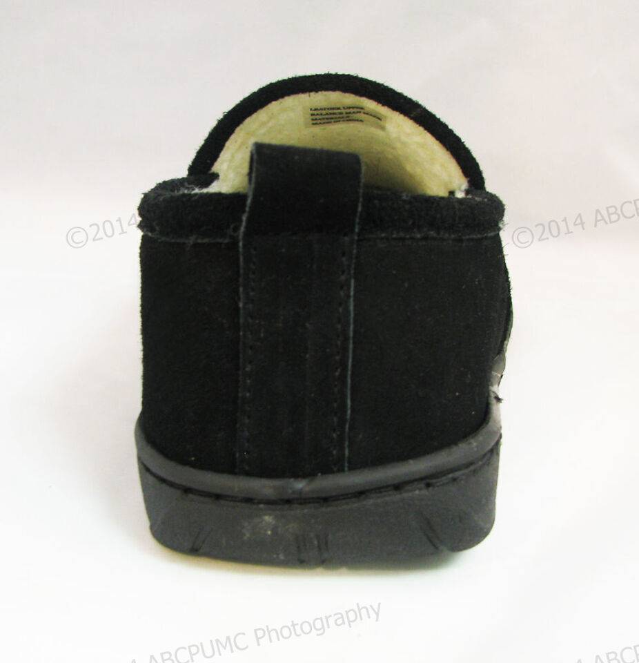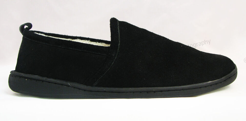 New Dearfoams Men's Suede Leather Fur Inside Close Back Slippers Black Shoes, Sizes 8-13