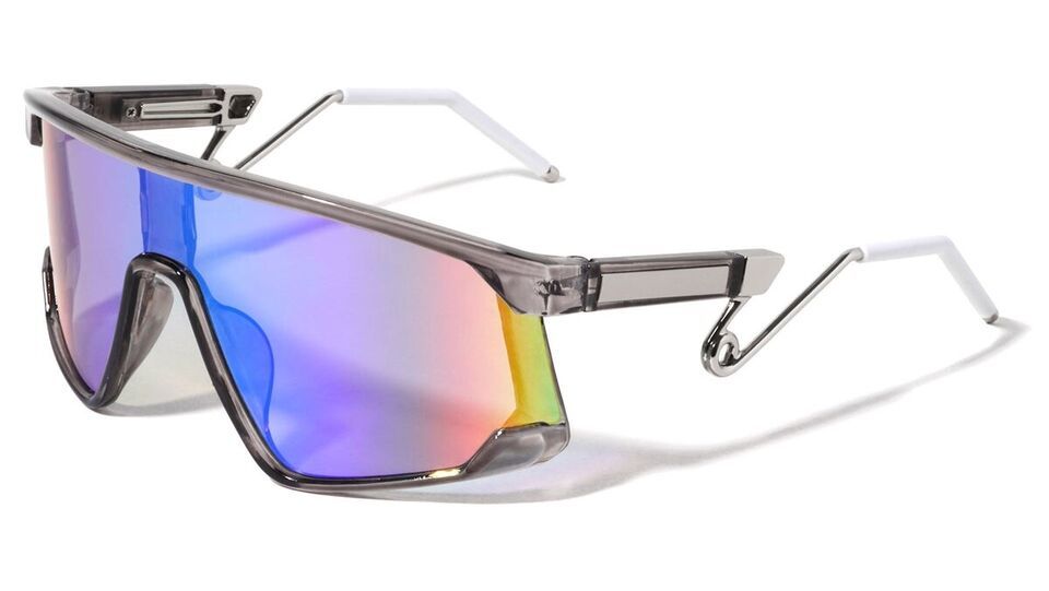 Experience the perfect blend of style and protection with Dweebzilla's Oversized One Piece Shield Lens Wrap Around Loop Pin Sunglasses. Designed for the fashion-conscious individual, these sunglasses feature a bold, wrap-around frame made of durable plastic, complemented by a loop pin accent on each arm. The multicolor frame and lens options cater to a variety of personal styles, while the 100% UV400 protection ensures your eyes are shielded from harmful rays.
