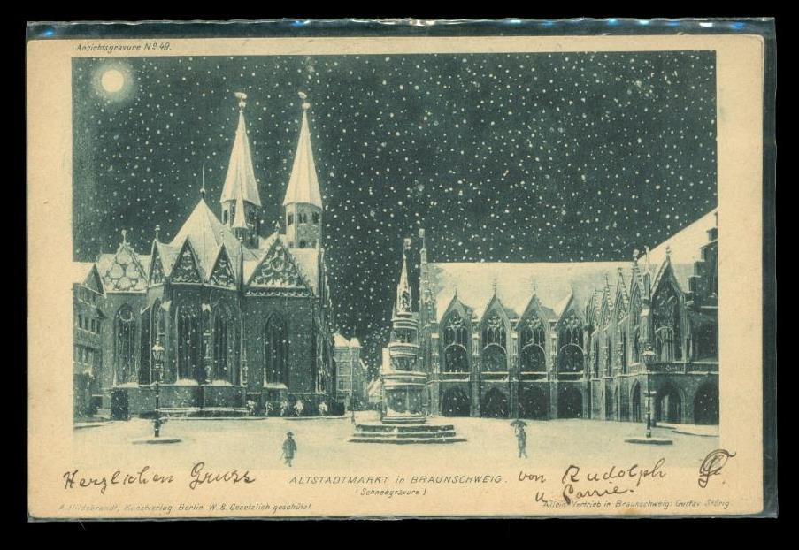 Vintage Christmas Postcard UDB 1909 Germany to USA Altstadtmarkt Braunschweig
