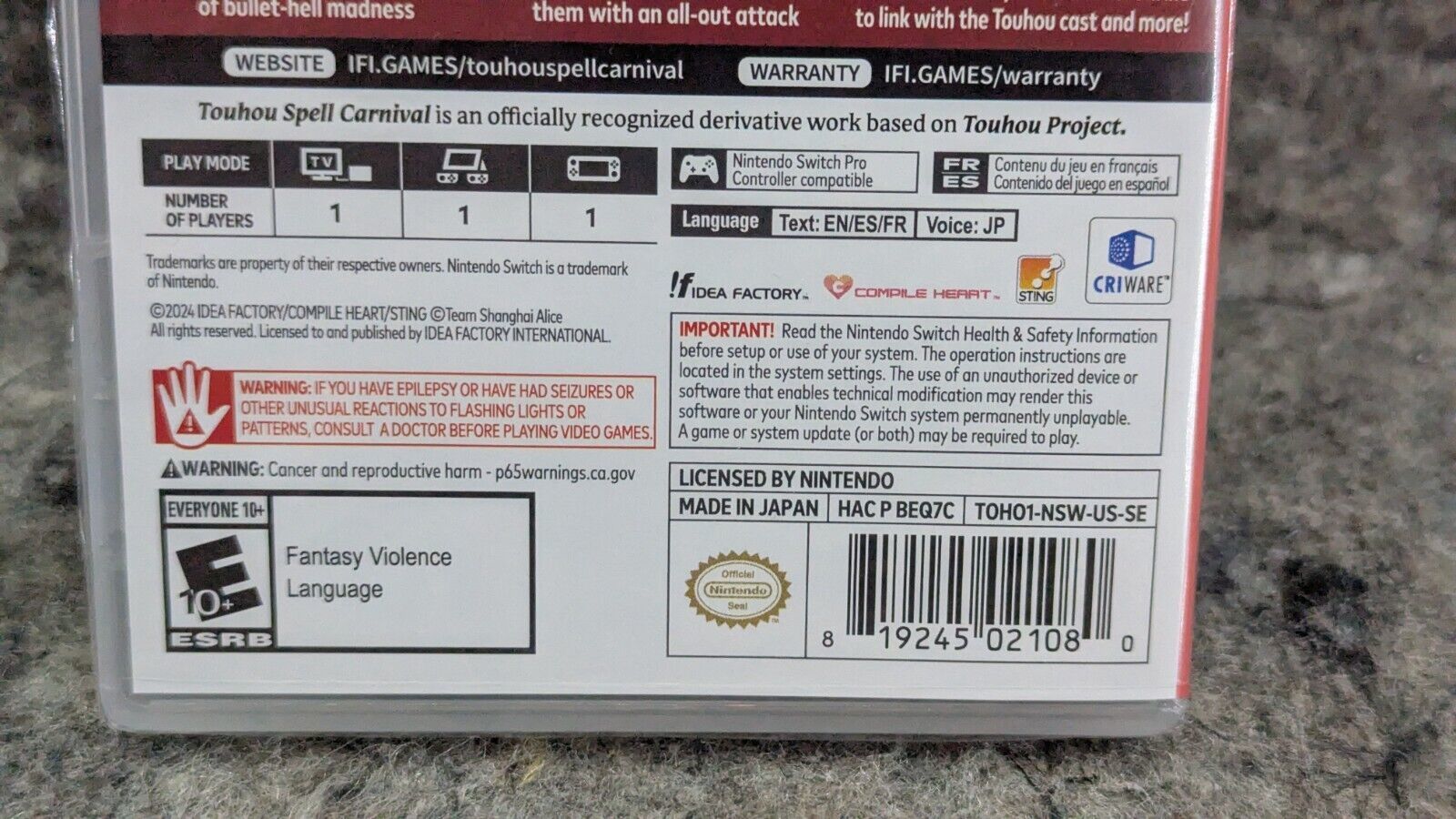 New/Sealed TOUHOU SPELL CARNIVAL 2024 Authentic Nintendo Switch