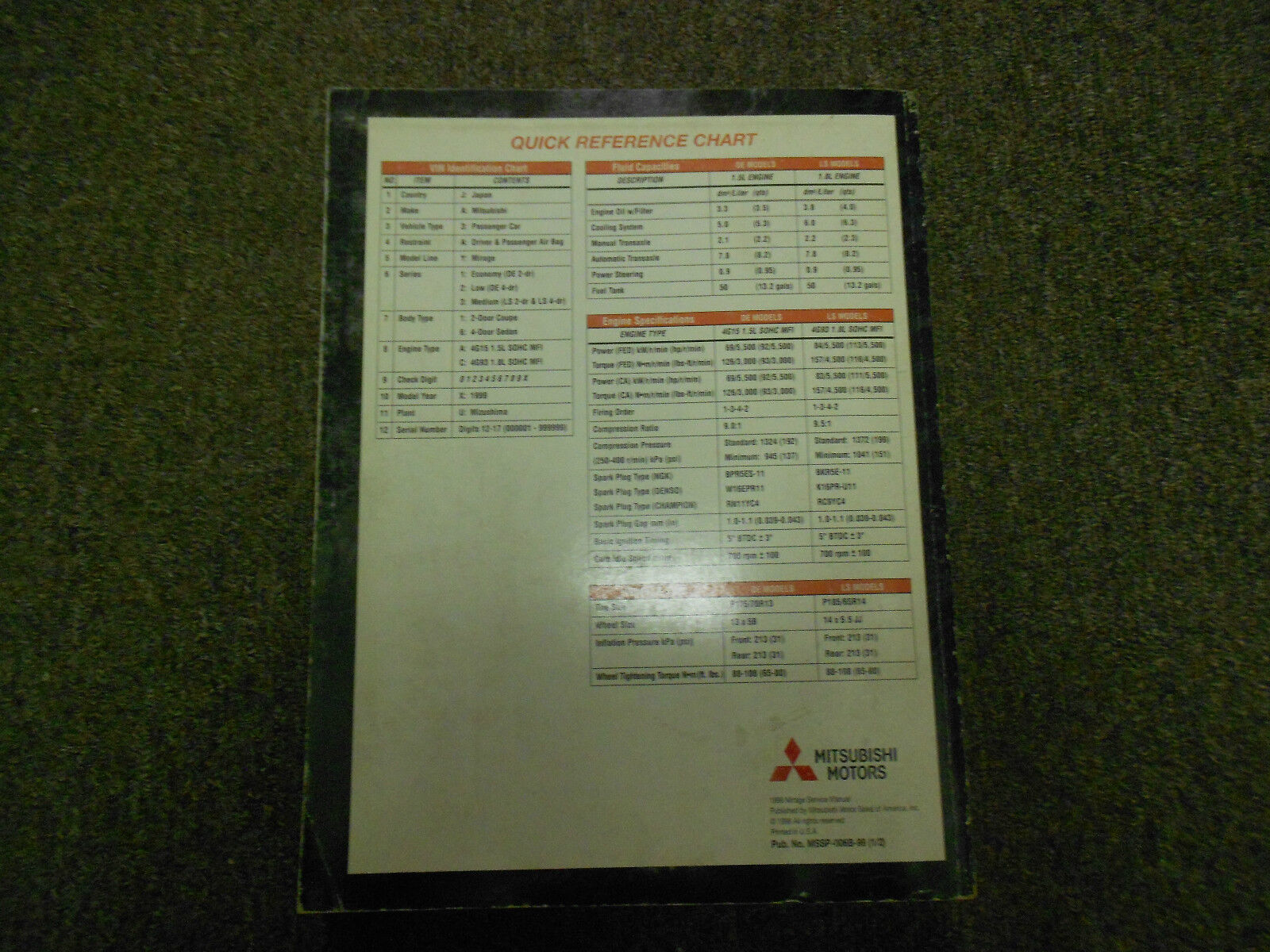 Loads of information and illustrations, covers a lot, no missing pages, step by step Instructions, exploded illustrations and/or diagrams, great manual to have when you own a MITSUBISHI Mirage. This manual will save you money in Repairs/Service.