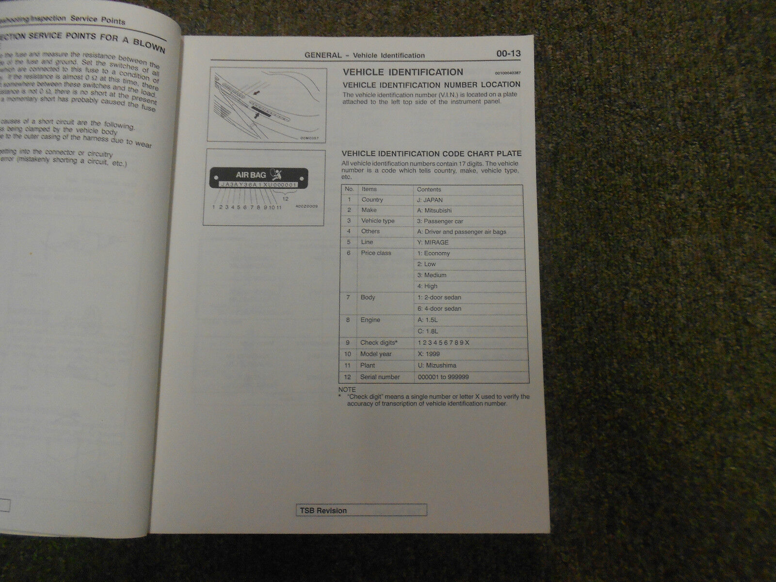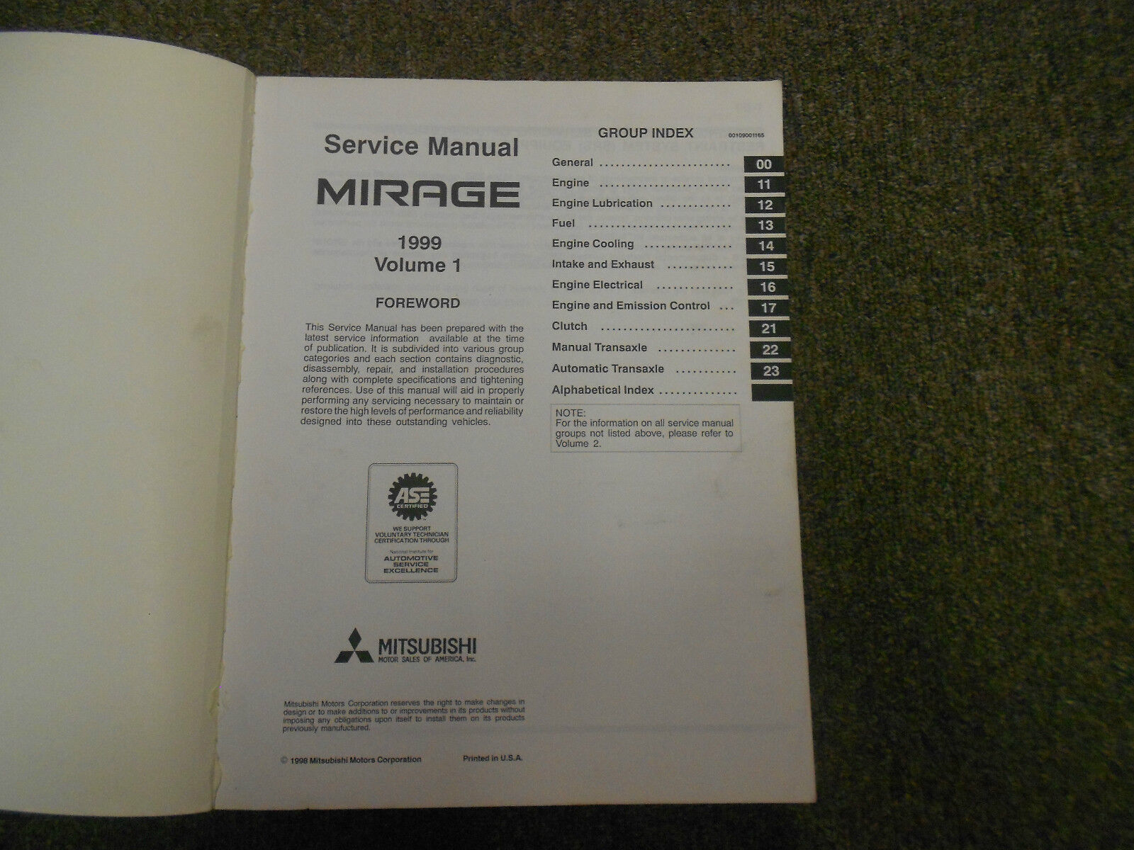 1999 MITSUBISHI Mirage Service Repair Shop Manual VOL 1 FACTORY OEM DEALERSHIP