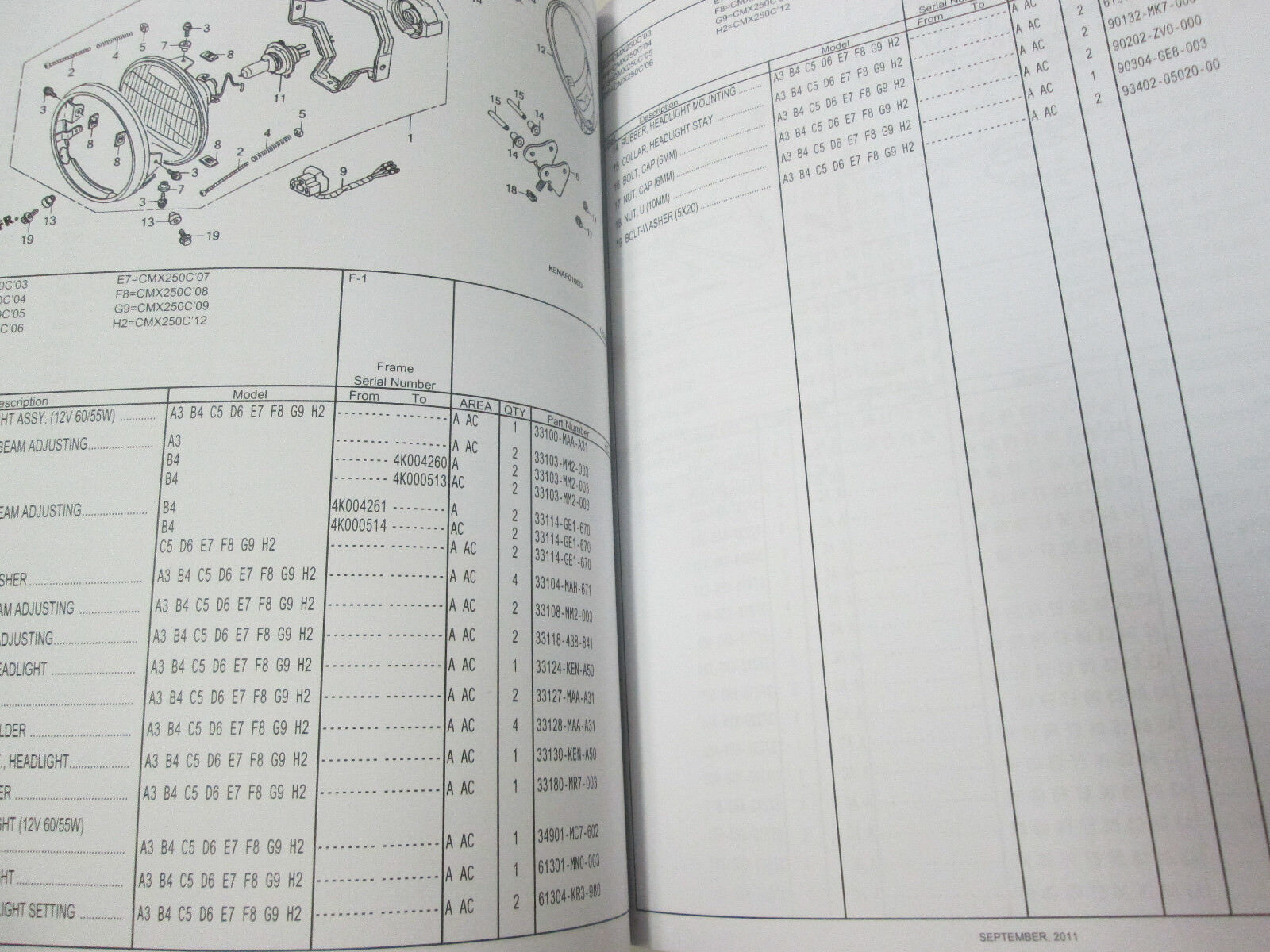 NEW, SECOND PRINTING 2003-2009 HONDA CMX250C REBEL FACTORY Parts Catalog Manual