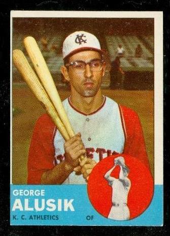 1963 Topps Baseball Card George Alusik Kansas City Athletics #51 Outfield. Raw and ungraded. Smoke and pet free.