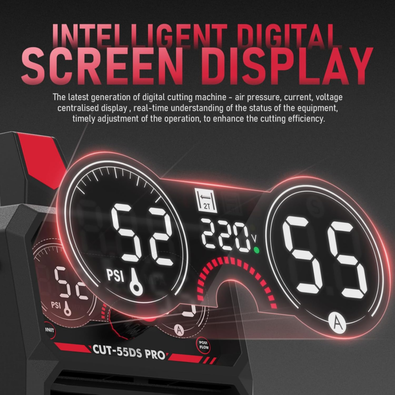 110/220V Plasma Cutter Non-High Frequency, Large LED Digital Display Non-Touch Pilot Arc, Digital DC Inverter Dual Voltage Plasma Cutting Machine CUT-55DS PRO NEW