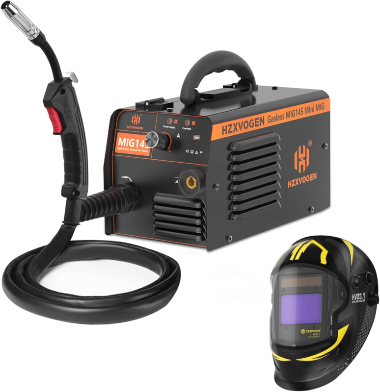 COMPACT AND PORTABLE: HZXVOGEN MIG145 mini welder machine weighs only 9 lbs/4.5 kg. The portable handle makes it easier to operate, and the lightweight design makes it more convenient to carry. It's perfect for any garage work or outdoor projects.