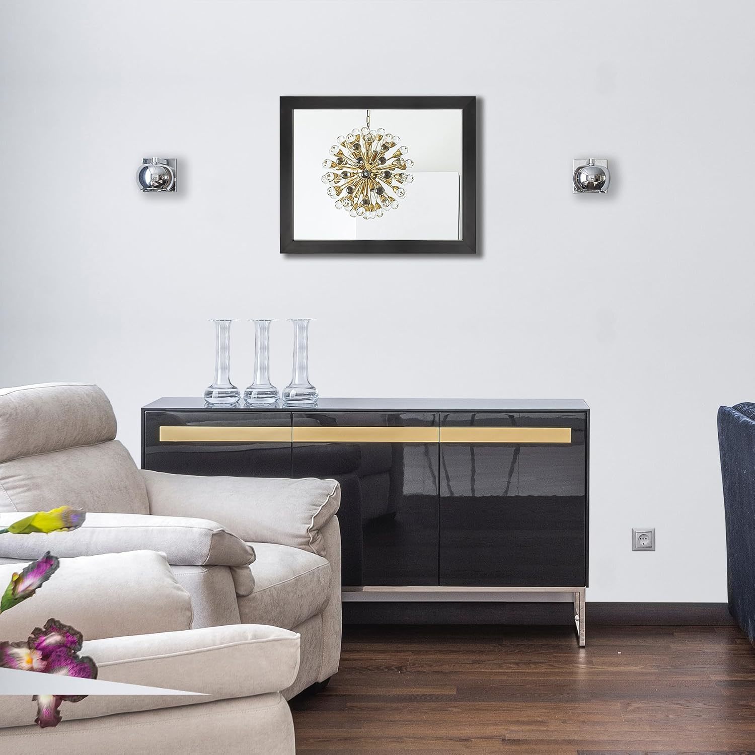 Premium Quality Material: 1.5cm thick and 4cm wide frame+3mm no-distortion HD float silver glass to deliver clear reflection+high quality explosion-proof membrane for safety. We use commercial level material to provide a perfect wall mounted mirror to customer Durable and Safe: Our wall mirror absolutely safety guaranteed with explosion-proof membrane, which even impacted by external force, the glass will not be spilled out, more safe and protective Perfect Size: 20" length, 16" width, 0.59" thickness, (reflection measurements 16.85?x12.85?) perfect addition and looks fabulous for any wall Modern Design: The texture polystyrene frame would protect the mirror and also adds elegance and class for home decor, suitable for any room Easy Install: Metal mounting brackets and hanging hardware included, make it easy to install both horizontal or vertical. This small mirror is suitable for dressing room, vanity or just put it on the desk to add light and enhance the beauty of any room in your home instantly