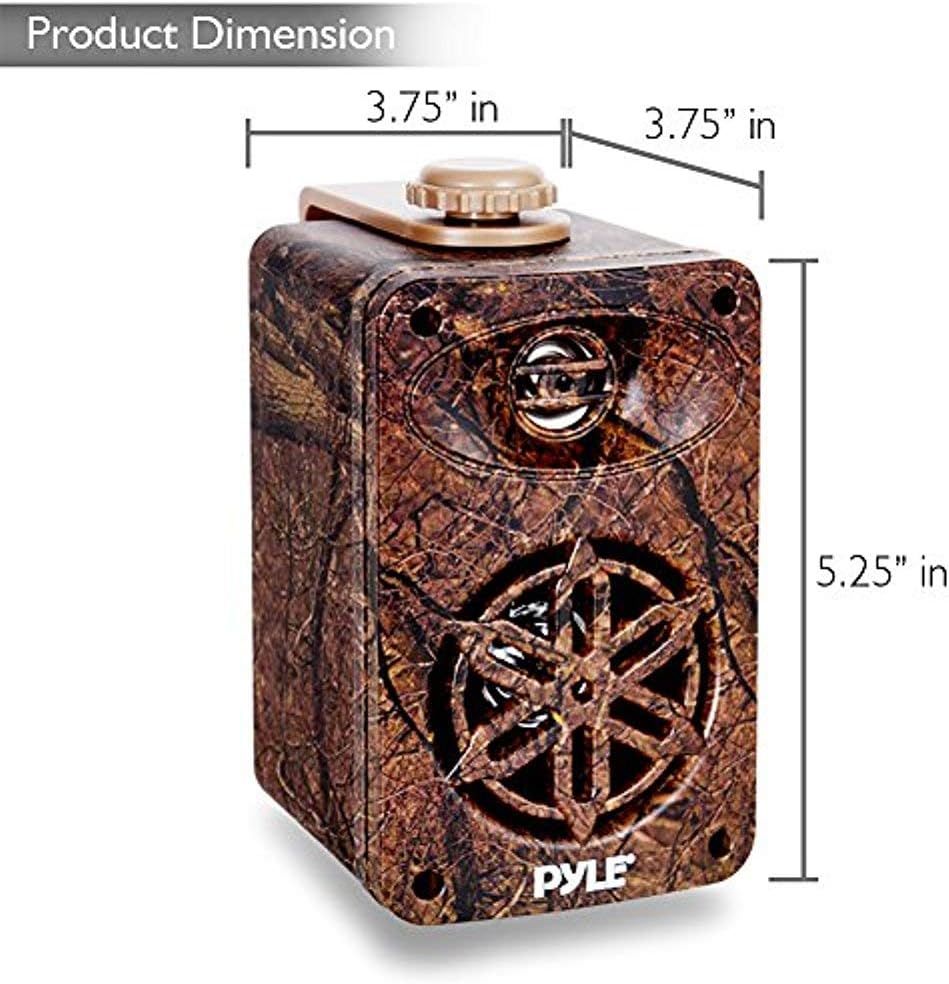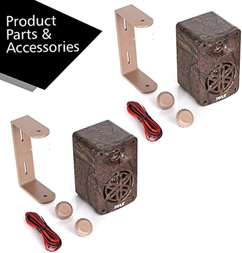 The Pyle Compact 3.5? Wall Mount Home Speakers, 3-Way Indoor/Outdoor Speaker System, Camo Style, 200 Watt (Pair) - Dual Passive Speaker System - Universal Indoor/Outdoor Mountable - Hunting Camouflage Pattern Design Style - Marine Grade Construction - Waterproof Rated Weather-Resistant - Connect Stream Audio from External Devices - 3-Way Full Range Stereo Sound Reproduction - Bass Reflex Vent for Added Bass Response - Built-in Capacitor Crossover Network - Lightweight Compact Size - Removable Rustproof Mesh Grills - Quick Connect/Disconnect Speaker Terminals - Used for Home, Garage, Yard, Deck, Porch, Patio - What?s in the Box: - (2) Wall-Mount Speakers - Speaker Wire, 11.5? ft.