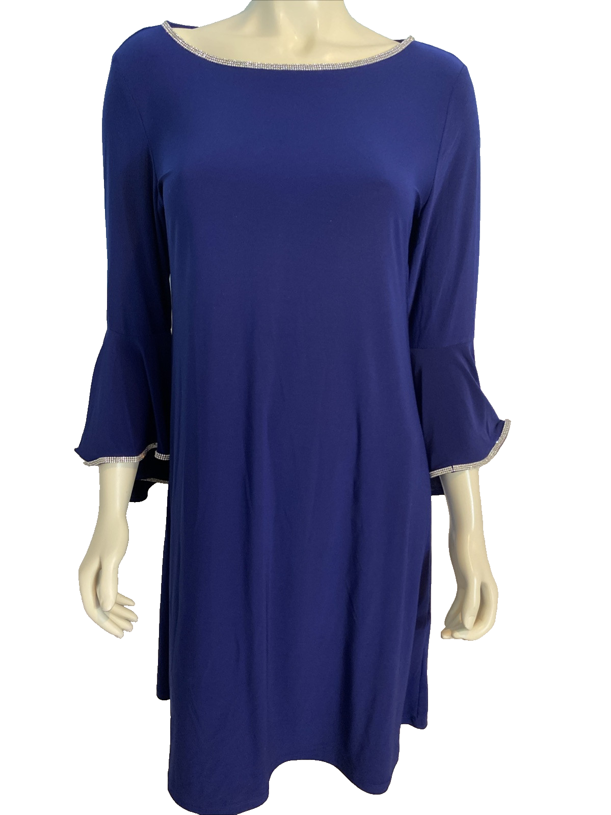 MSK Royal Blue 3/4 Sleeve Knit A Line Dress Rhinestone Sleeve Hem Size M