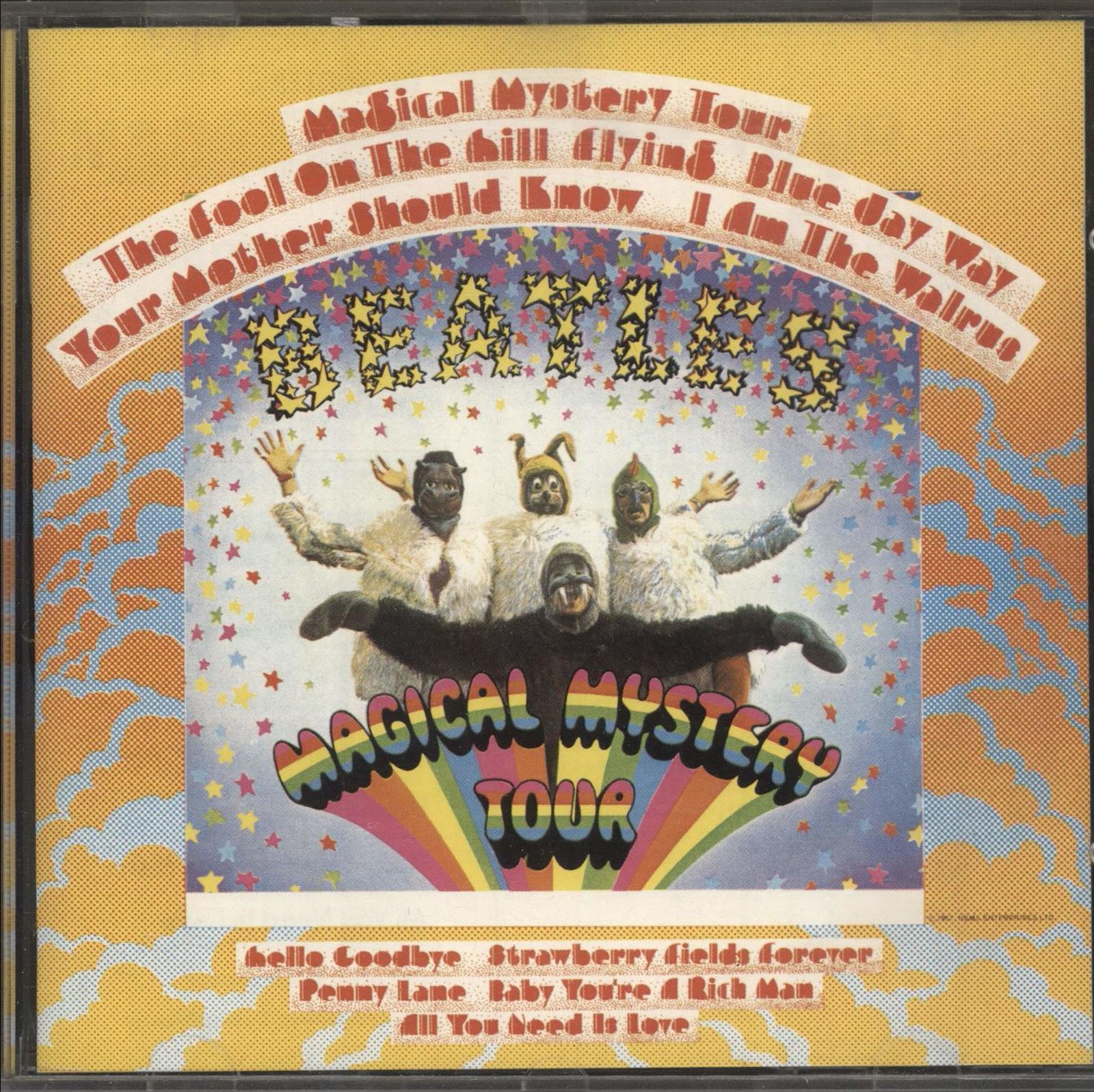 Product description: THE BEATLES - MAGICAL MYSTERY TOUR - U.S. Edition CD on the Parlophone / Apple Records label , 11 Tracks: 1. Magical Mystery Tour , 2. The Fool On The Hill , 3. Flying , 4. Blue Jay Way , 5. Your Mother Should Know , 6. I Am The Walrus , 7. Hello Goodbye , 8. Strawberry Fields Forever , 9. Penny Lane , 10. Baby You're A Rich Man , 11. All You Need Is Love