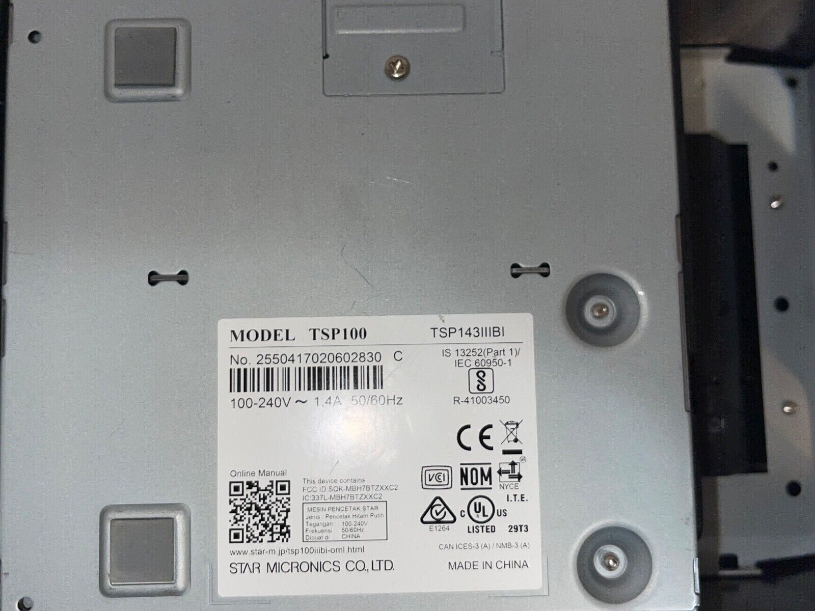 Star TSP100 Thermal POS Receipt Printer TSP143IIIBI w Bluetooth Power Cord