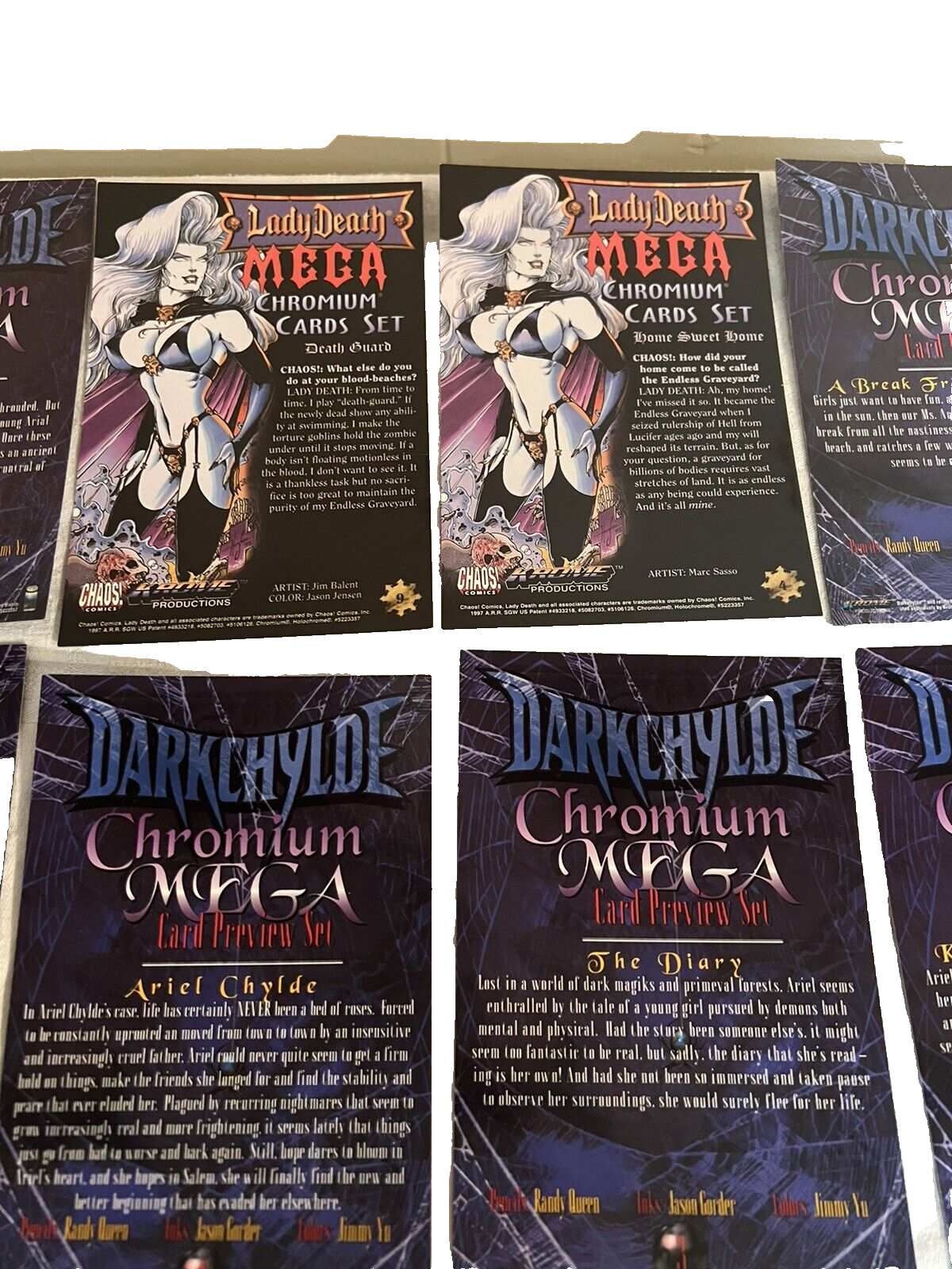 1997 DARKCHYLDE CHROMIUM MEGA CARD SET 6 CARDS plus lady death