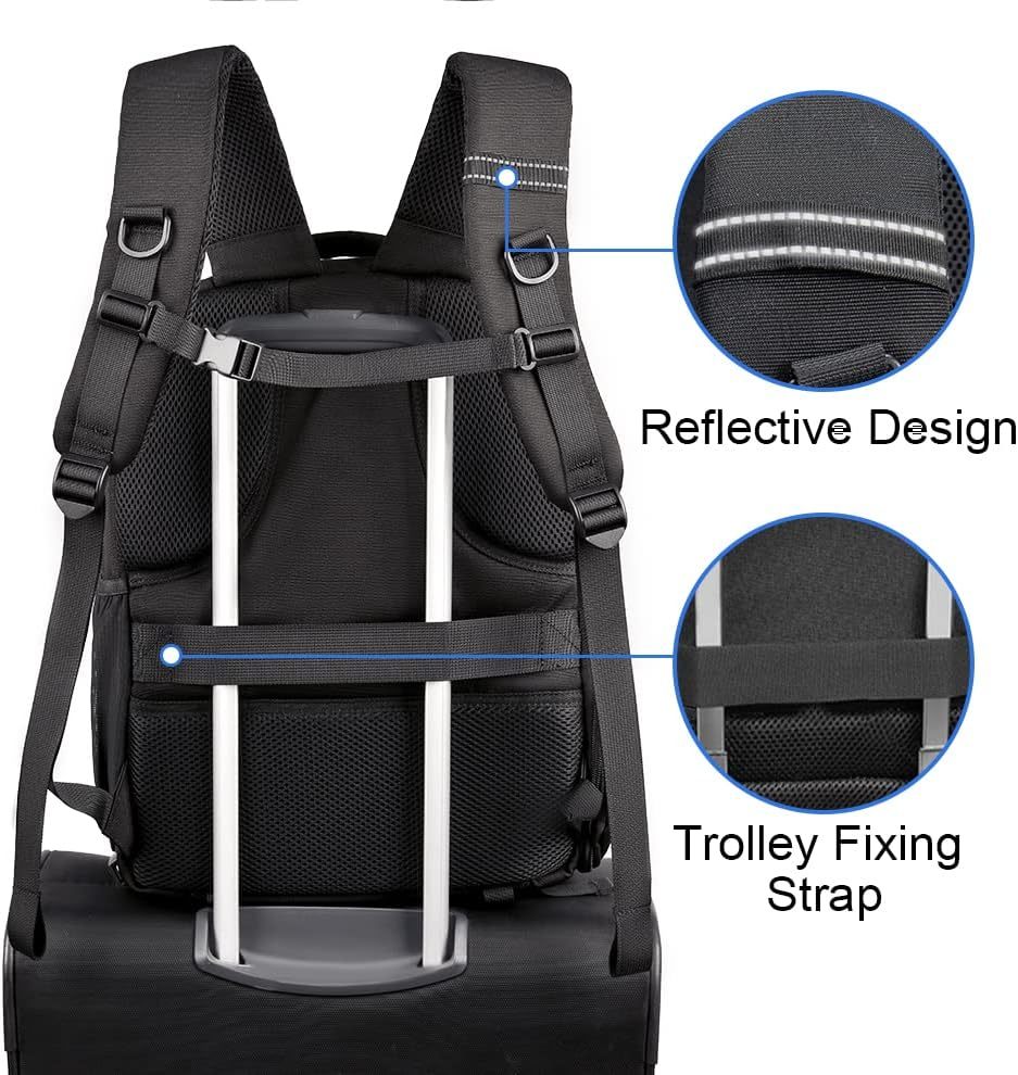 ?Large-Capacity?Dimensions:43*30.5*13.5 cm/16.9*12.0*6.1 inches, 1.4kg/3.08lb. This professional photography camera backpack fits 2 camera bodies+7 lens+15.6 inch laptop+flash+ipad+tripod place+cellphone+power bank+UV lens+len cover+lens cap+other accessories. Or for a DJI drone. High-elasticity mesh bags on both sides for bottle and umbrella. At the bottom of camera bag is tripod or trekking pole place. And a hidden zipper pocket on back which is used for valuable items. ?Multi-Functions??USB port which is easy to charge for cameras, cellphone and other electronic devices. ?Double waterproof, made of high density waterproof 900D polyester nylon and come with rain cover, protect your photography gears from being wet and damaged. ?There is one strap on camera back that can hang on suitcase handle, convient for travelling. ?Item Feature??Lengthened shoulder belts are made of high elasticity,decompression memory foam, very good design for European. ?Hidden Zipper design,special and beautiful. ?Inner bag paddings of 7-layer PE foam and PP board, shock-resistant and durable. ?Reflective Cwatcun logo ensure safety when riding at night.?Thickening portable sweat-absorbent handle that comfort to carry even loaded all your photography gears with long traveling. ?Good Quality and Perfect Design??Shoulder belts and handle that connected with camera rusksack have taken bar-tack reinforcement technology which load-bearing up to 50kg(110.2lb).Best care for your cameras, lens, flashes, tripod and other accessories. ?Scratch-resistant,waterproof, lightweight and environmentally friendly material protects against damage and deformed. ?Cwatcun alloy zipper wont rusty within 3 years ,and wont break within 5 years. ?Satisfied Service?1 Years warranty, any problem within 1 year, we will offer a new one for you;20 Years experience with more than 1000 employees focused on camera bags and photography gears,Worth for your trust.