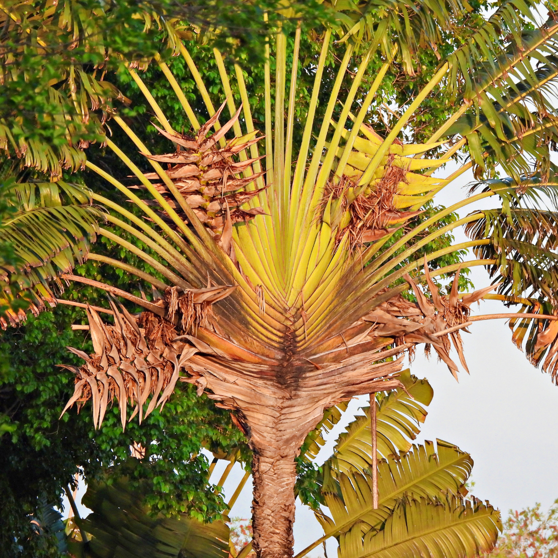 - Tropical, ornamental plant with a mature height of up to 15-20 feet, featuring large, paddle-shaped leaves and a distinctive, travel-sized "water pocket" at the base of the leaves