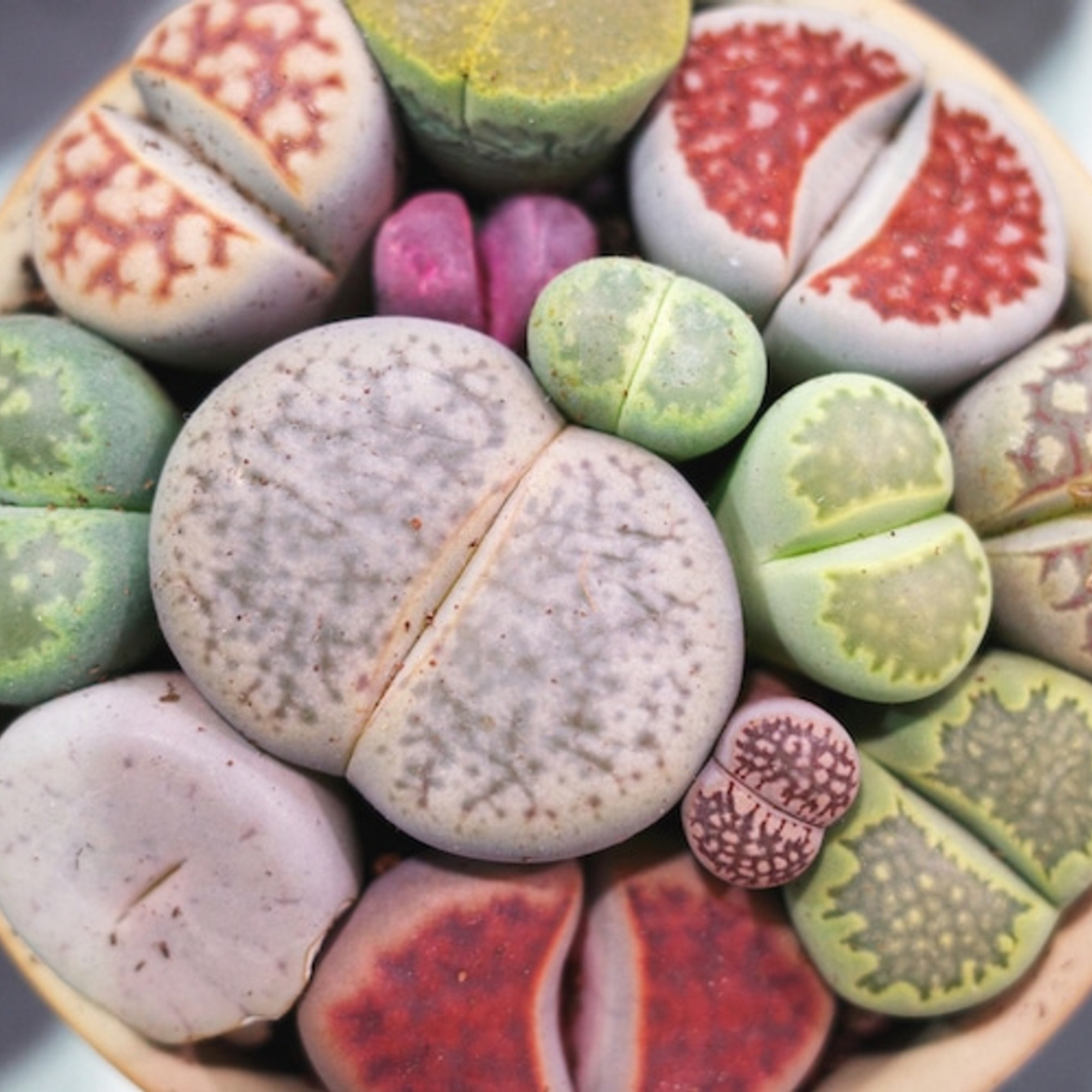 - Rare and exotic succulents, also known as Living Stones, with a unique, stone-like appearance