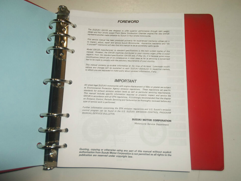 1990 1997 Suzuki GN125 Service Repair Shop Manual BINDER MINOR STAINS FACTORY