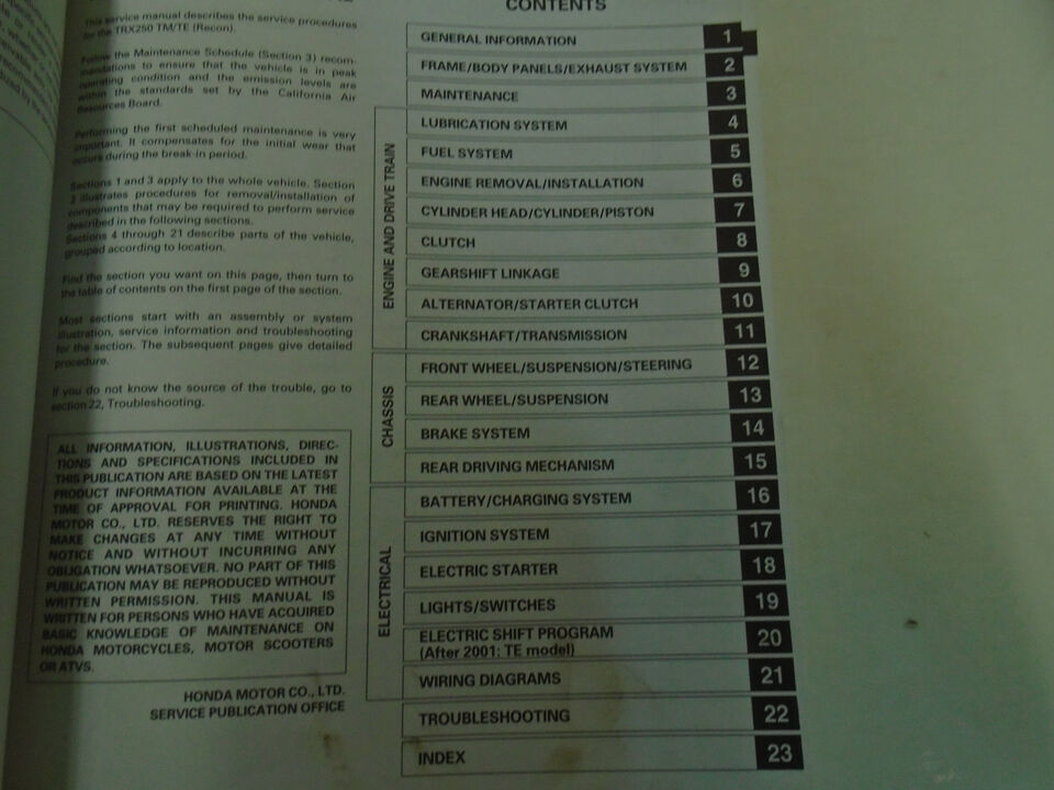 1997 1998 1999 2000 2001 2002 2003 Honda TRX250TE TM Service Shop Repair Manual