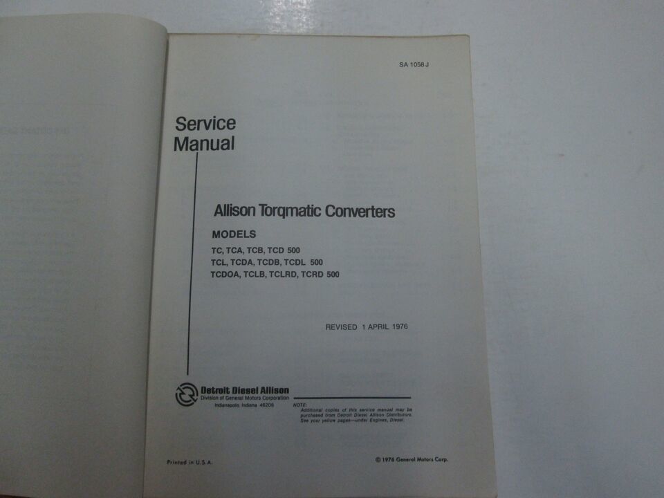 Detroit Diesel Allison Torqmatic Converters 500 Series Service Manual SA 1058J