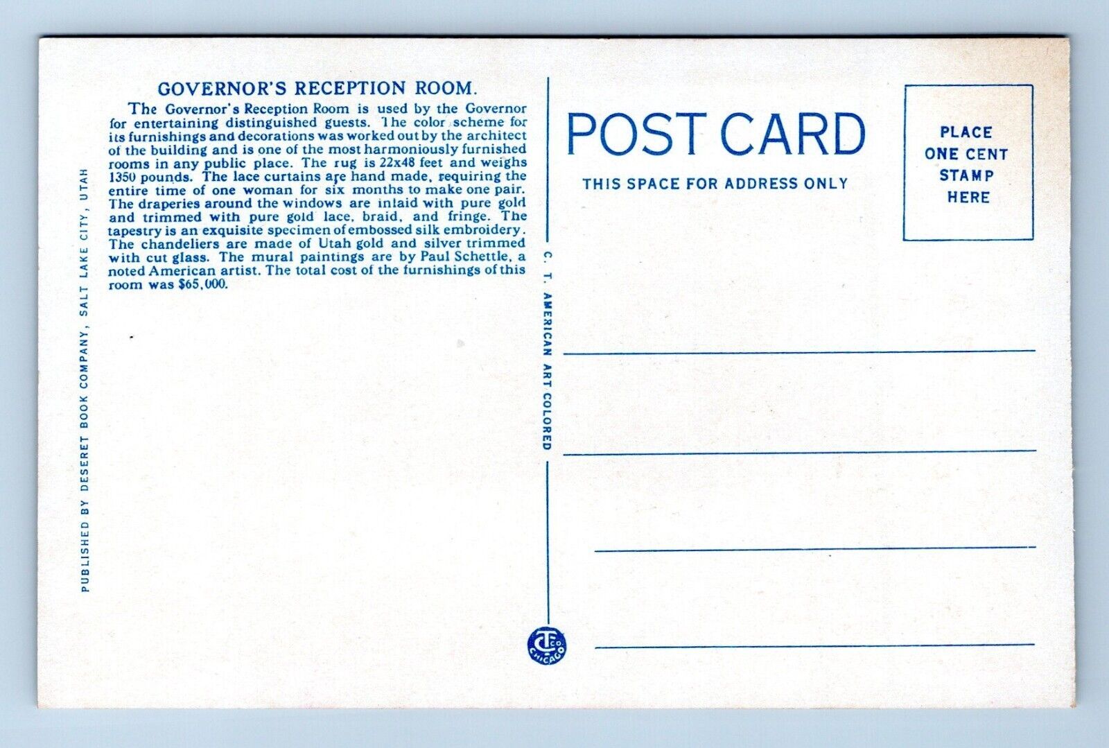 Governor Reception Room State Capitol Salt Lake City Utah UT UNP WB Postcard M1