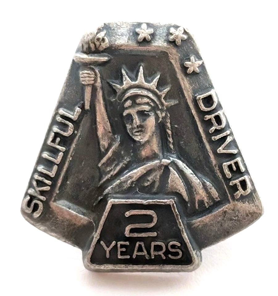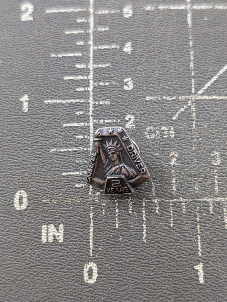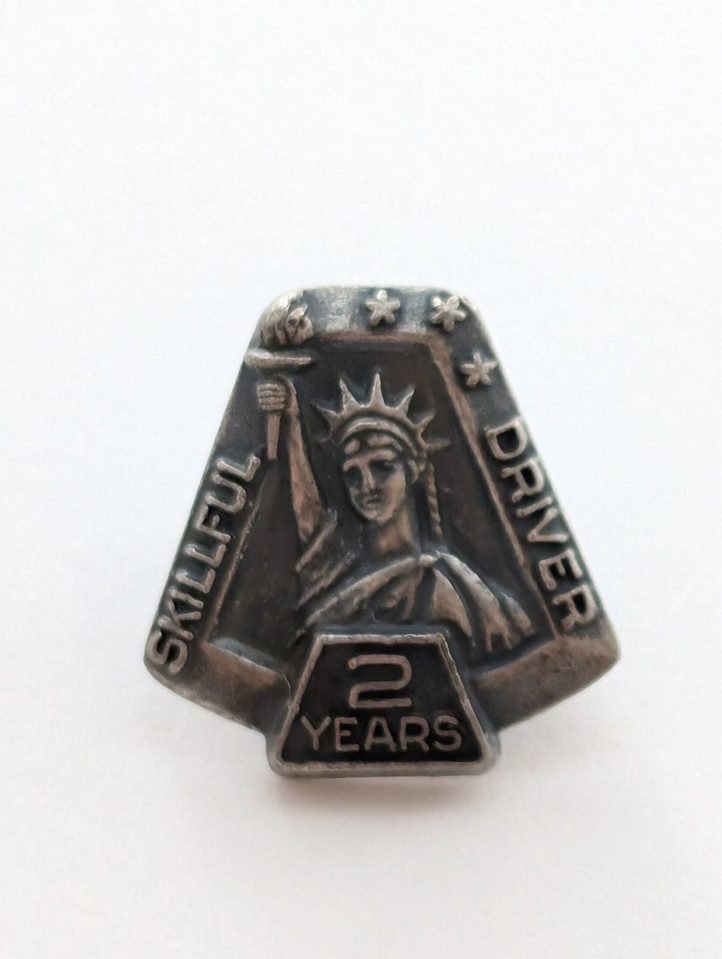 VTG Statue Of Liberty UPS Skillful Driver Safety Award Silver Tone Pin Screwback