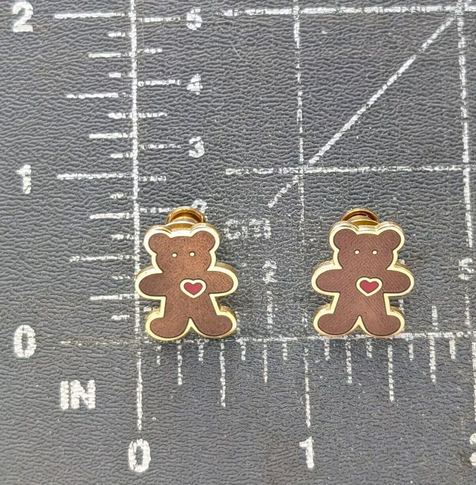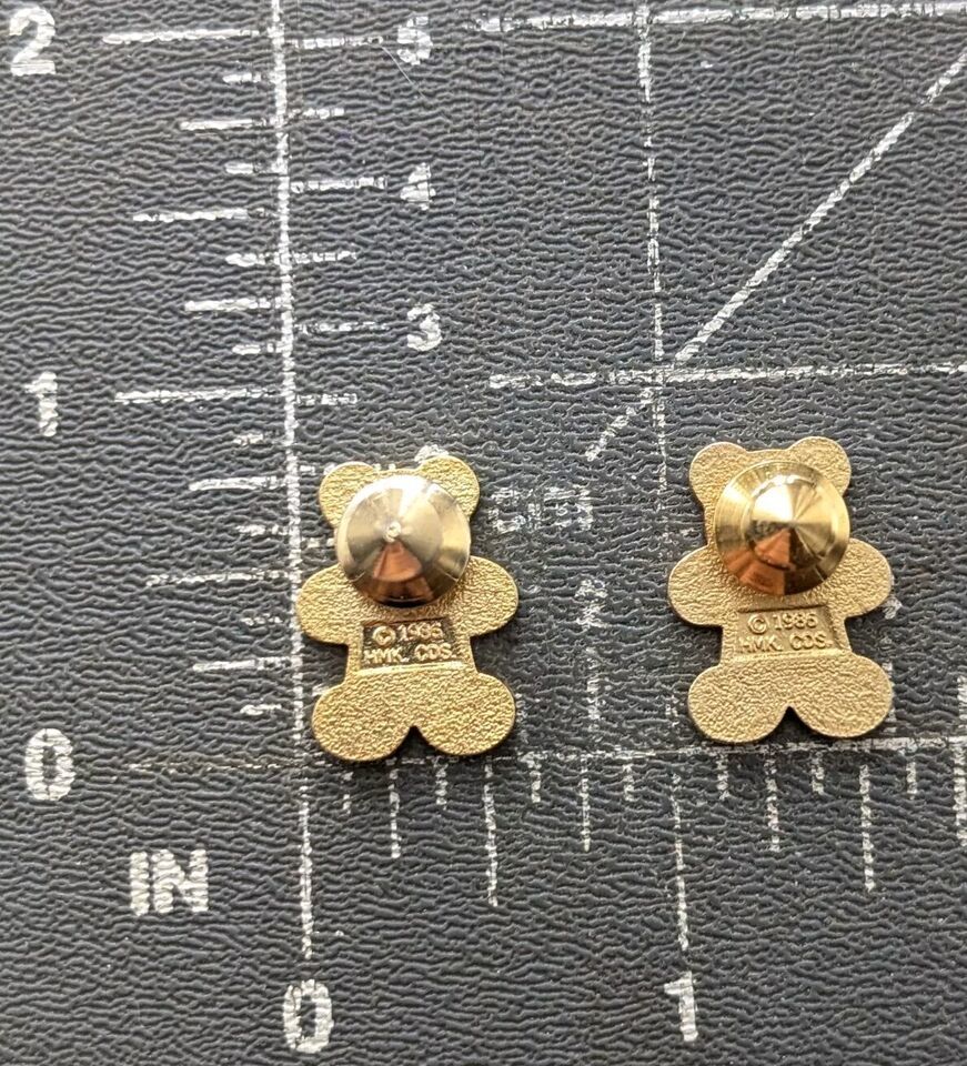 VTG Brown Teddy Bear Red Heart 1986 Hallmark Cards Enamel Pin Tie Tack Lot of 2