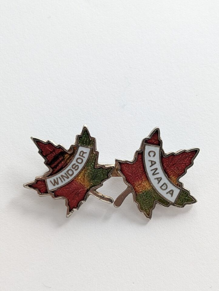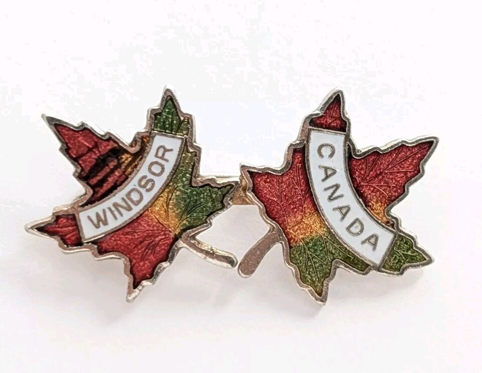 VTG Windsor Canada Double Maple Leaf Leaves Enamel Pin Brooch Travel Souvenir