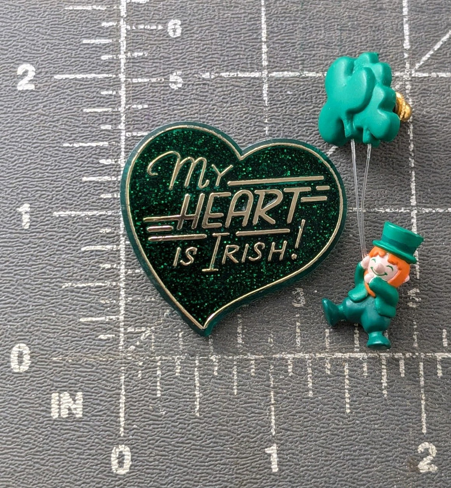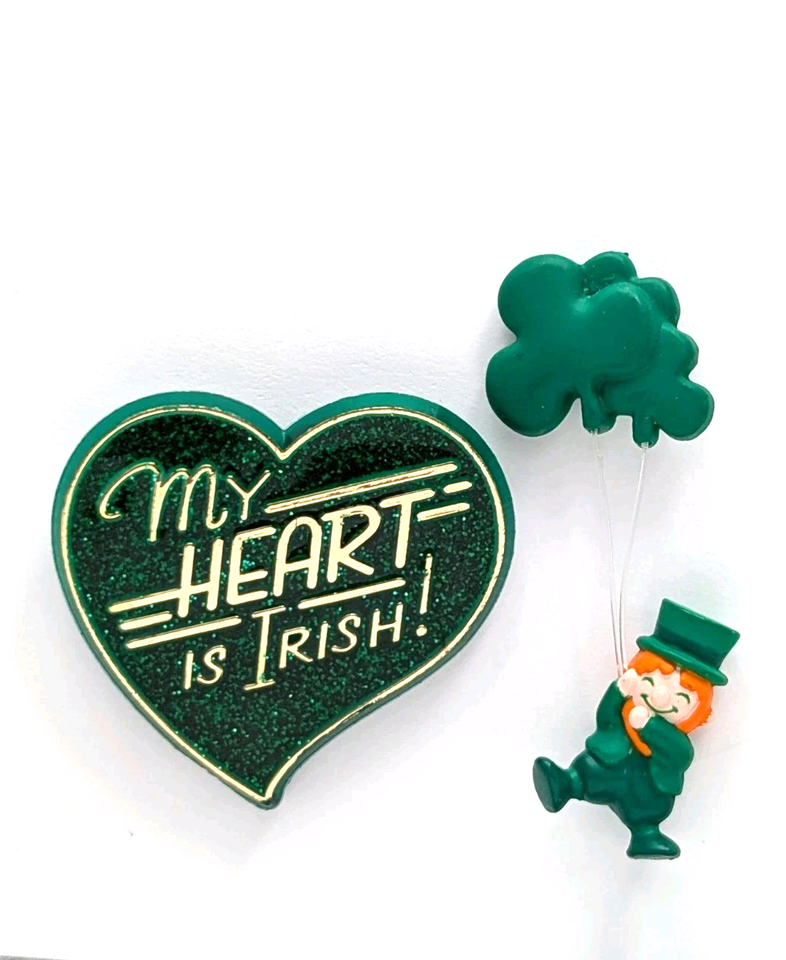 VTG Hallmark Irish Heart Shamrock Leprechaun St Patricks Day Pin Brooch Lot 2