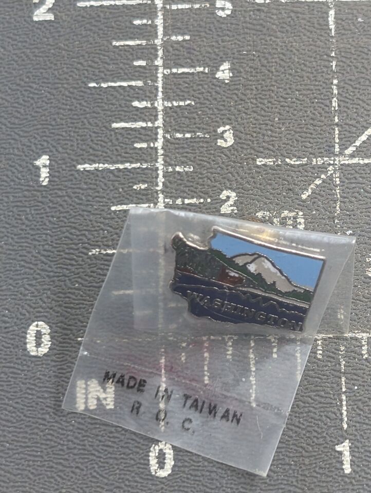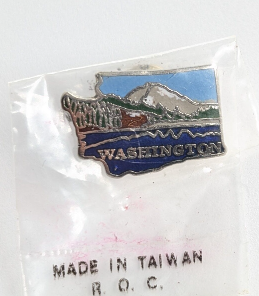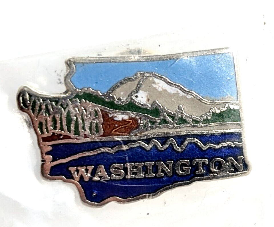 VTG Washington State Map Lake Mountain Scene Trees Enamel Pin Souvenir Mafco