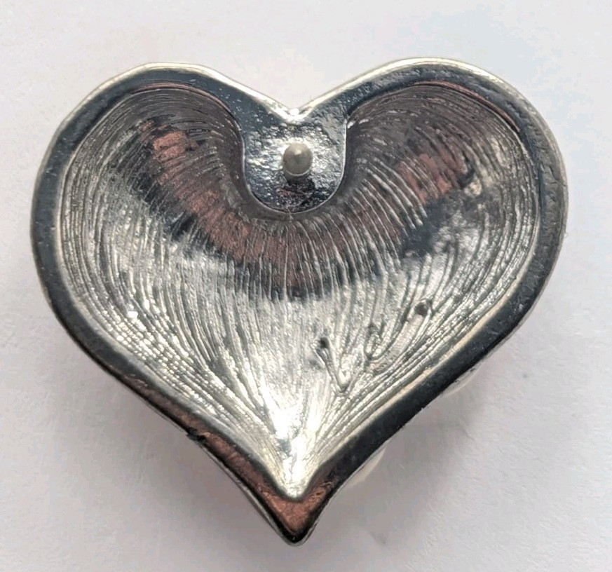 Signed LC Liz Claiborne Heart Blue Clear Rhinestones Red White Silver Tone Enamel Pin