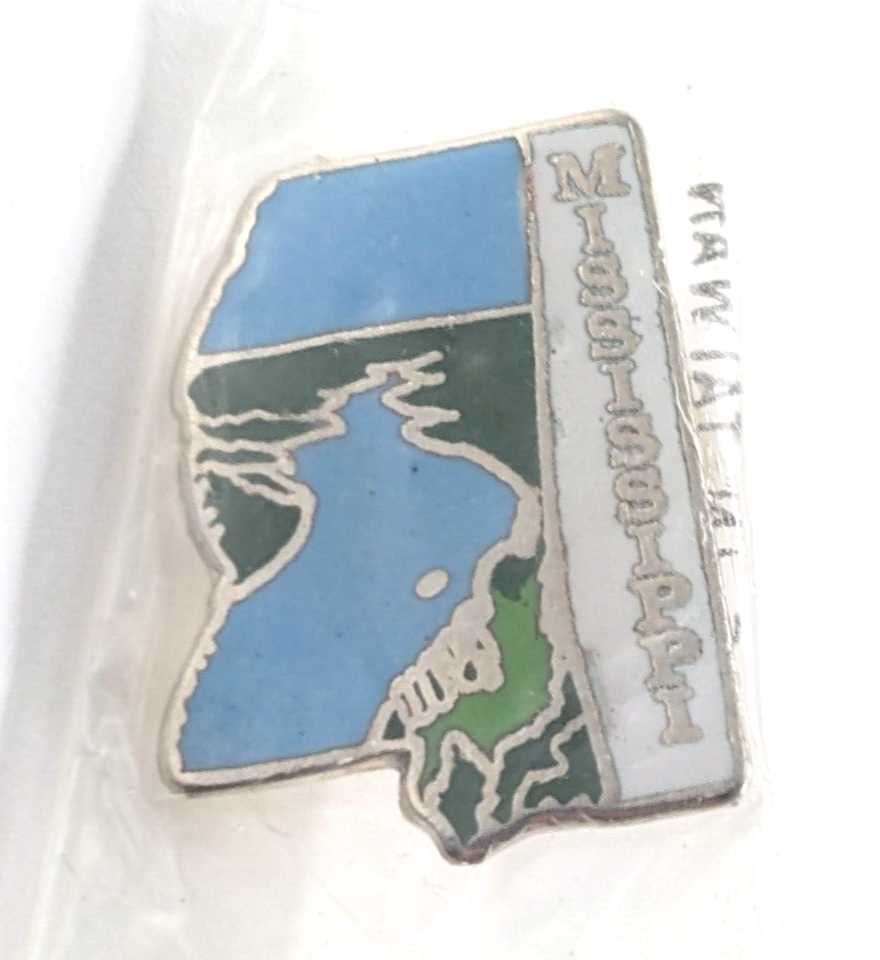 VTG Mississippi River MS State Map Enamel Pin Souvenir Mafco Blue Green White...