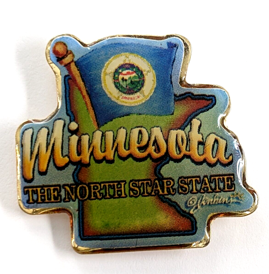 Minnesota North Star State Flag Map Lapel Pin MN Souvenir VTG