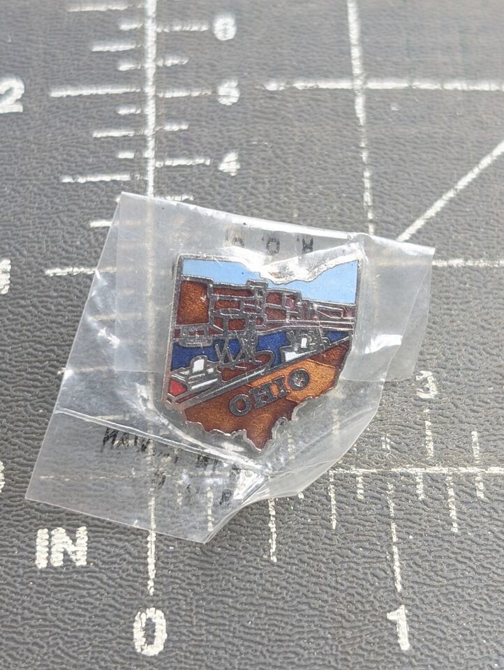 VTG Ohio State Map River Marina Boats Enamel Pin Souvenir Mafco Brown Blue...
