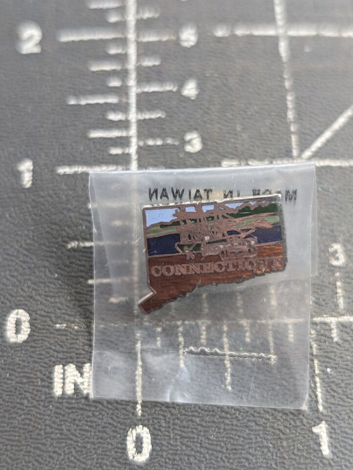 VTG Connecticut Ship Barrels Dock CT State Map Enamel Pin Souvenir Mafco Brown..