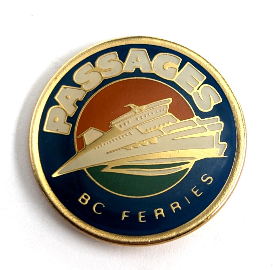 VTG BC Ferries British Columbia Canada Ferry Boat Gold Tone Enamel Pin Souvenir