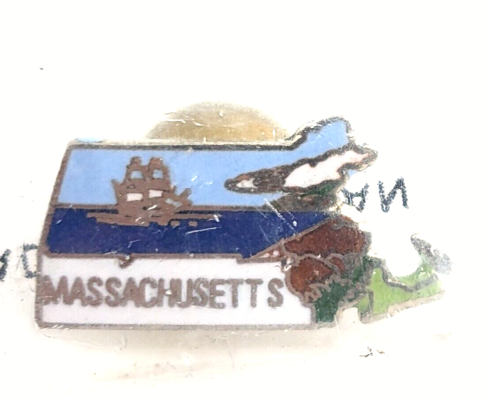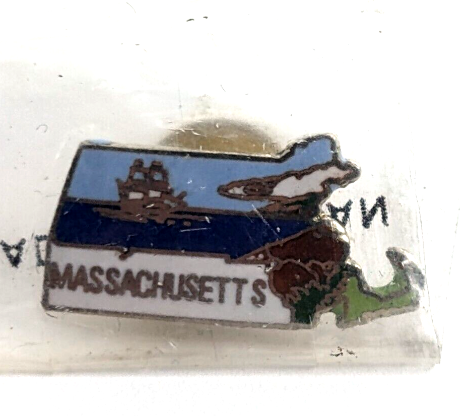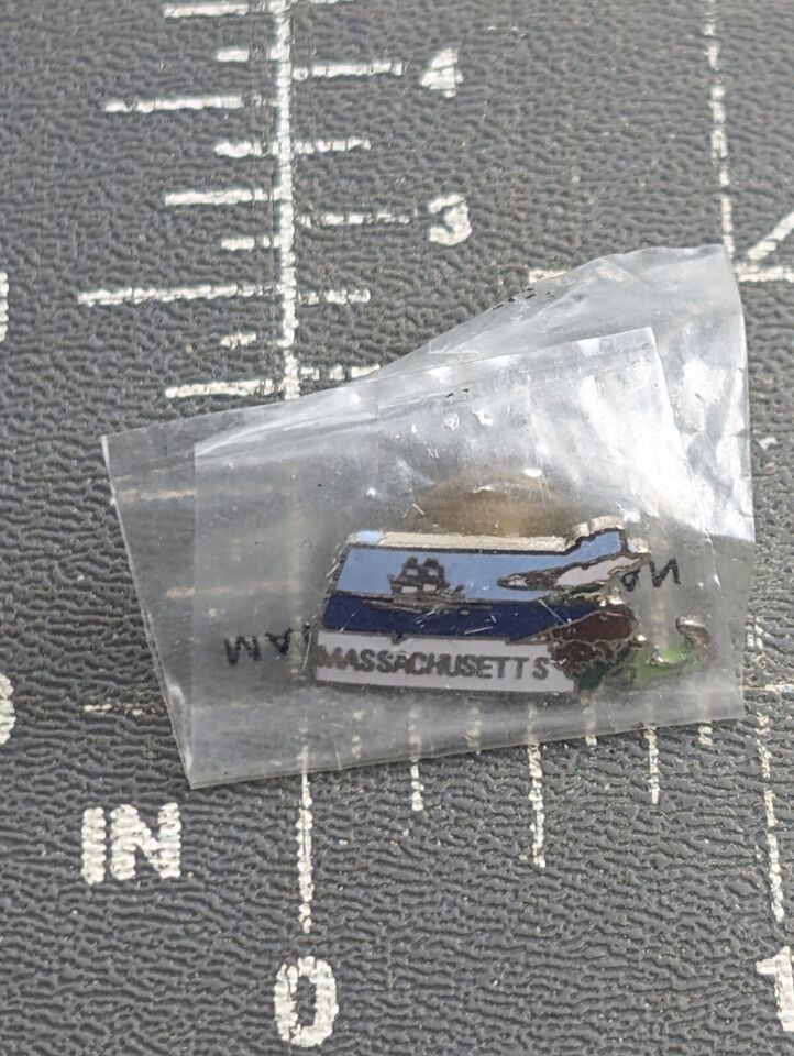 VTG Massachusetts State Map Ocean Ship Enamel Pin Souvenir Mafco Blue White...