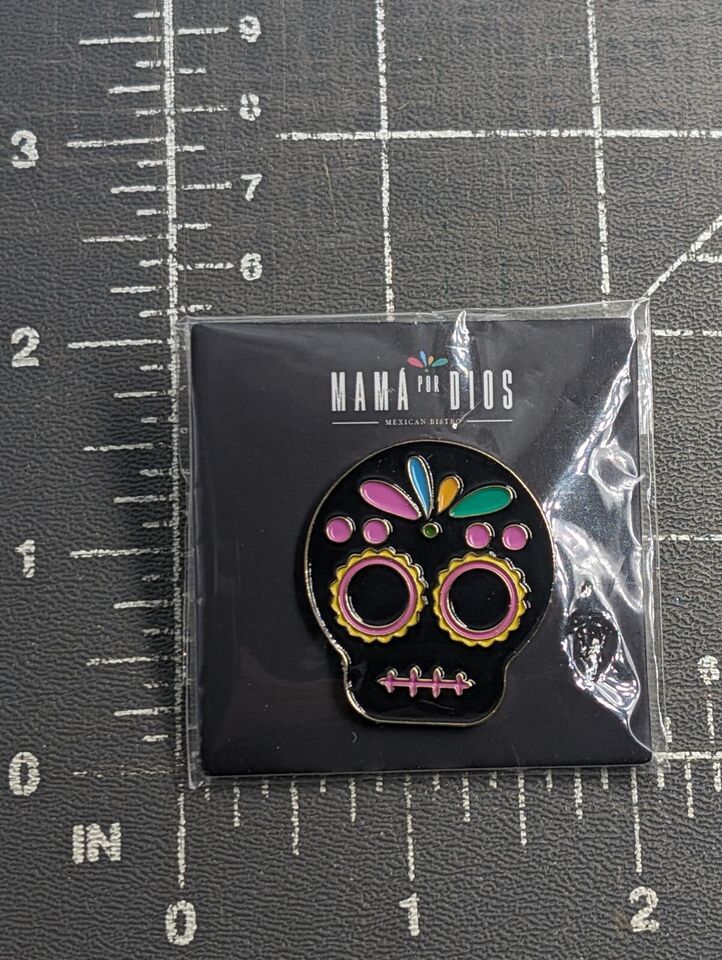 Mama Por Dios Mexican Bistro Skull Enamel Pin Restaurant Advertise Black Pink...