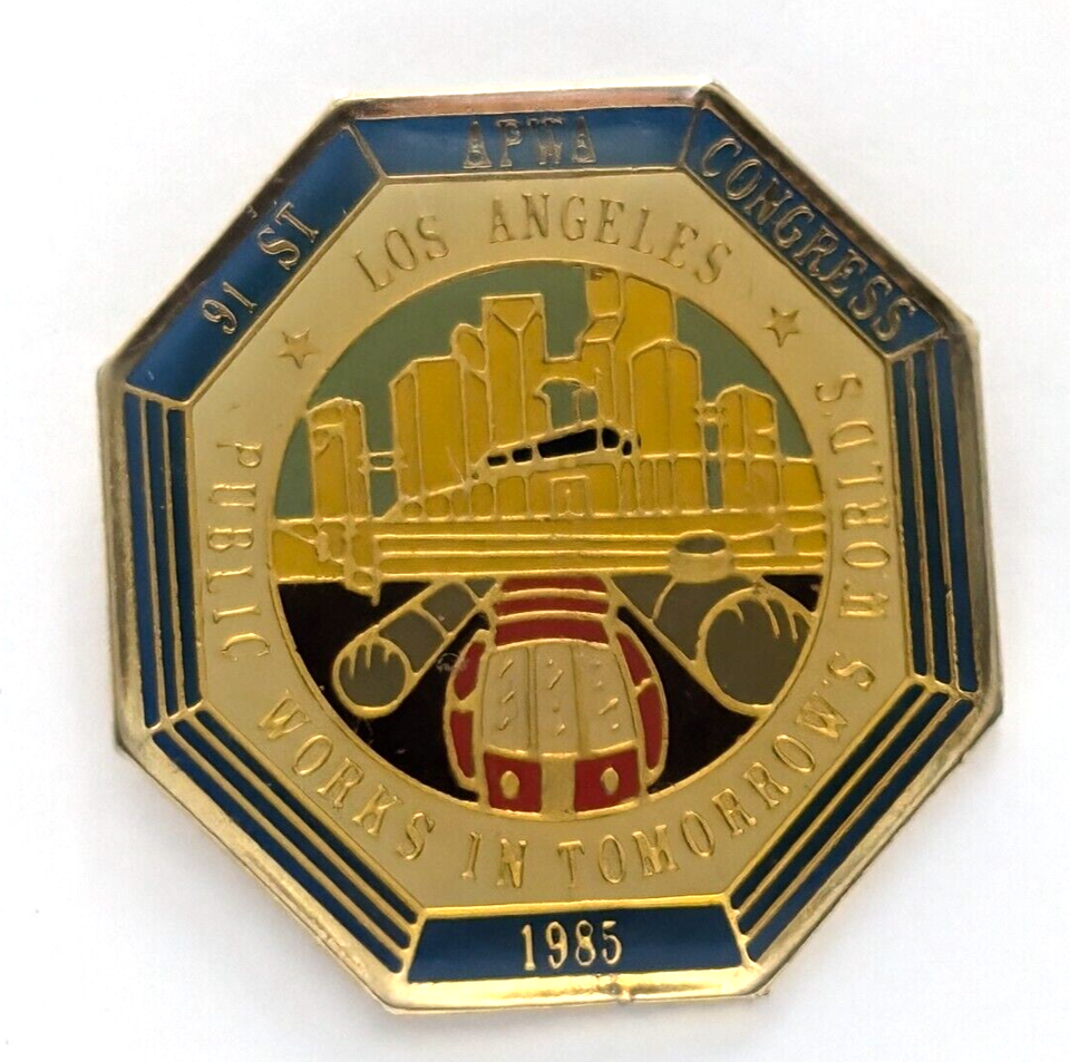 1985 APWA Congress Los Angeles Conference Pin Public Works In Tomorrow's Worlds