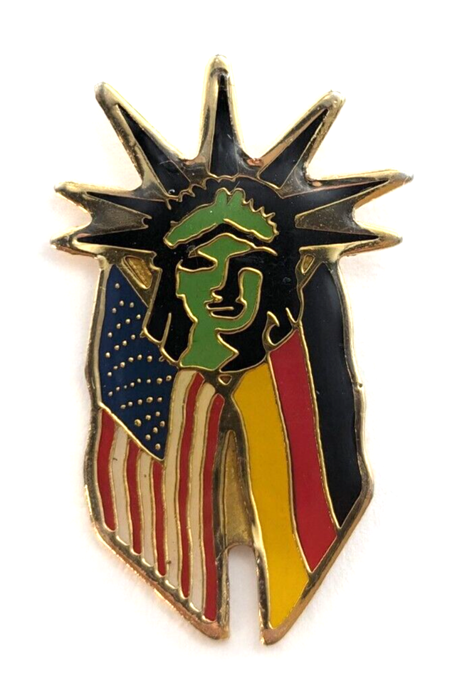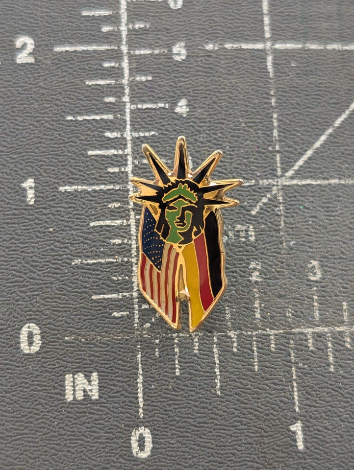 1984 Statue Of Liberty American Germany Flags Gold Tone Enamel Pin