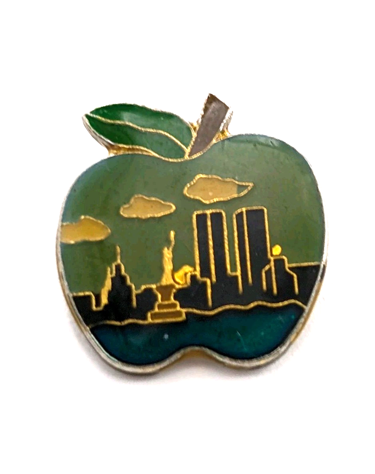 New York City Big Apple Statue of Liberty NYC Skyline Twin Towers Gold Tone Enamel Pin
