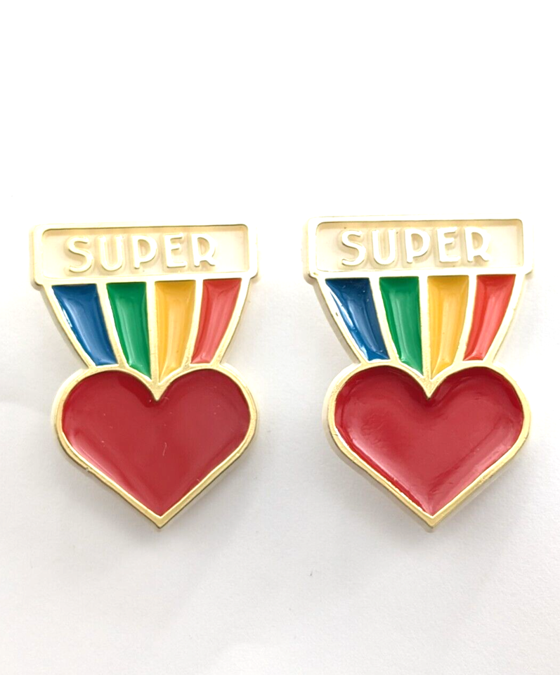 Lot 2 VTG 1981 Hallmark Cards Super Love Red Heart Rainbow Plastic Brooch Pins