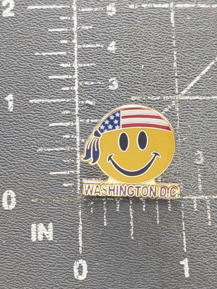 Washington DC Smiley Face US Flag Patriotic Bandana Emoji Pin Souvenir Yellow..