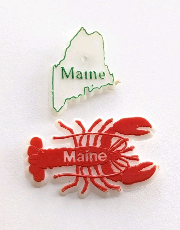 Lot Of 2 Maine Lobster State Map Plastic Pins